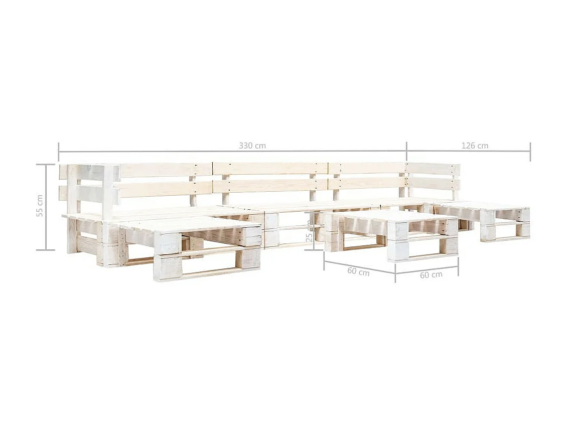 Salon de jardin palette 6 pcs Bois Blanc 11