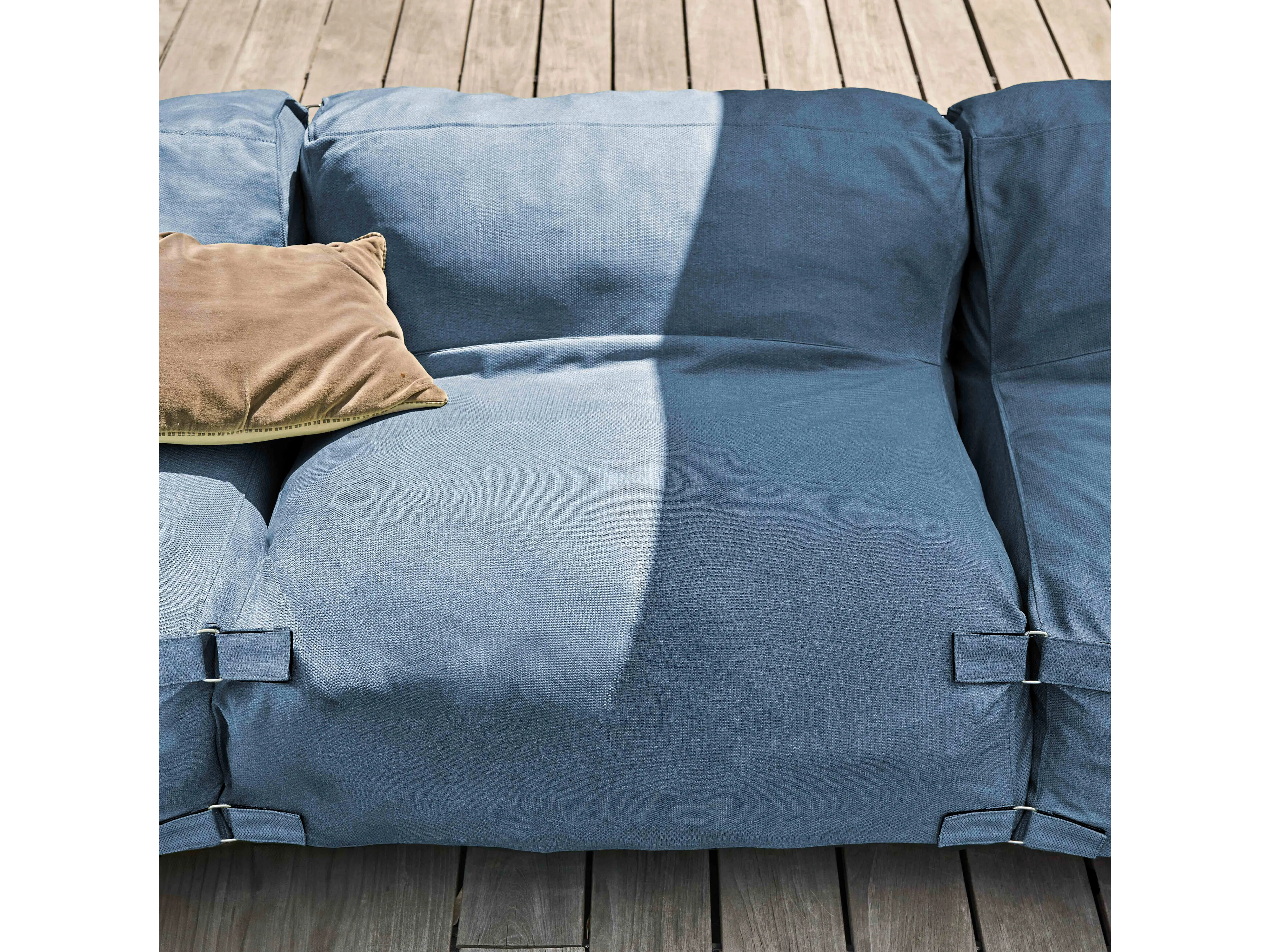 Salon de jardin un fauteuil d'angle et une méridienne bleu pacific