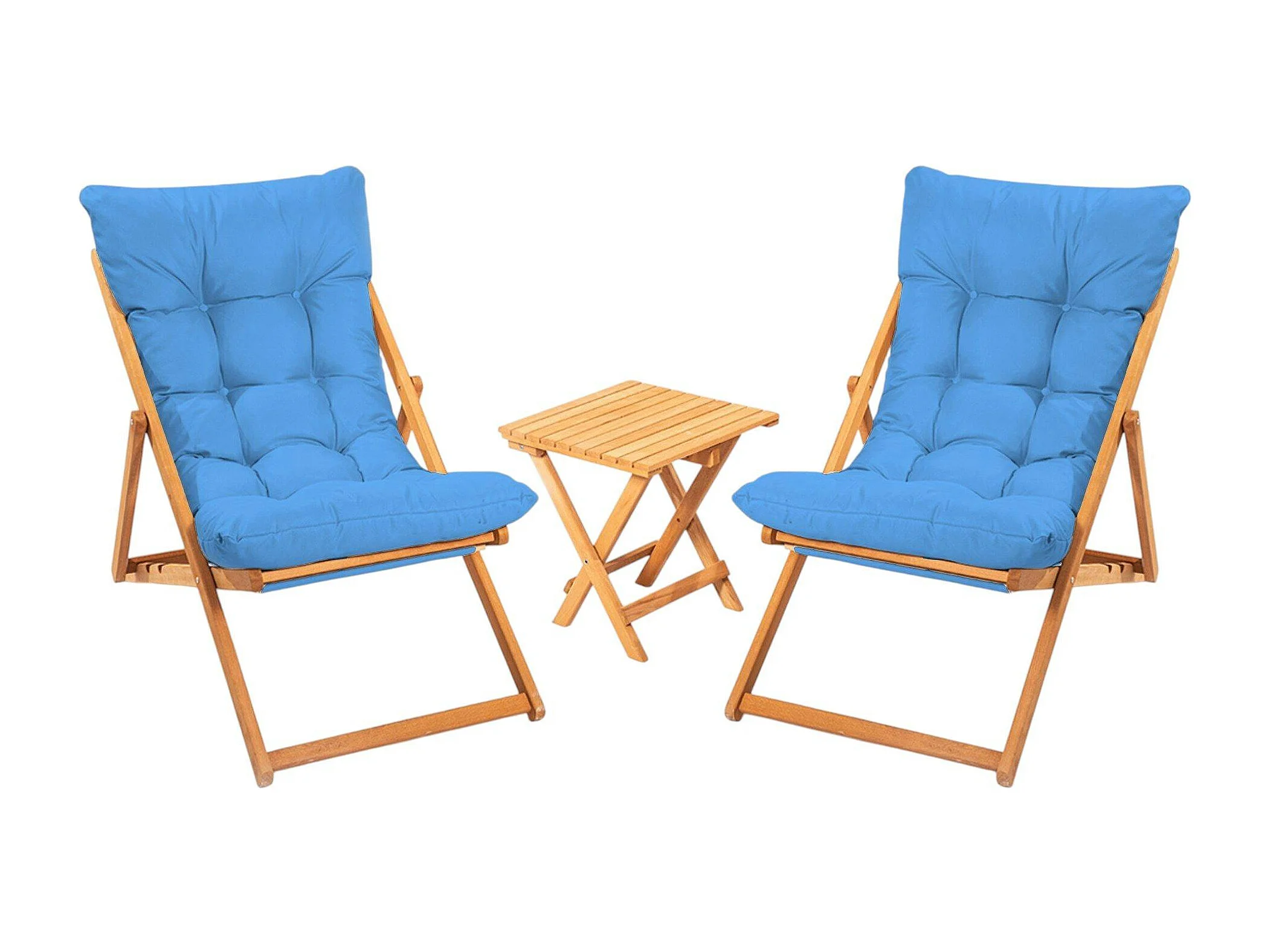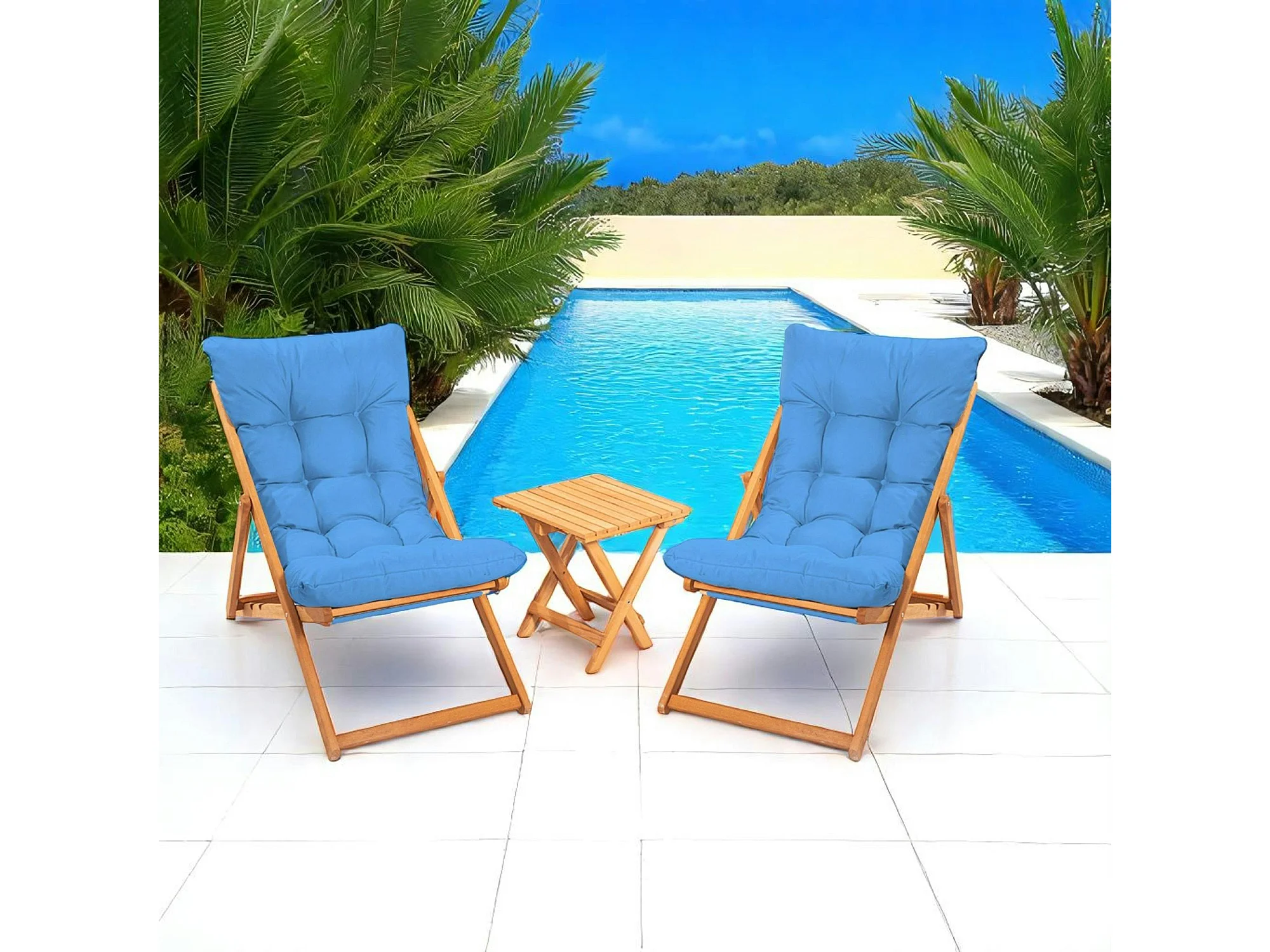 Salon jardin détente 2 places bleu - bois et toile SORA