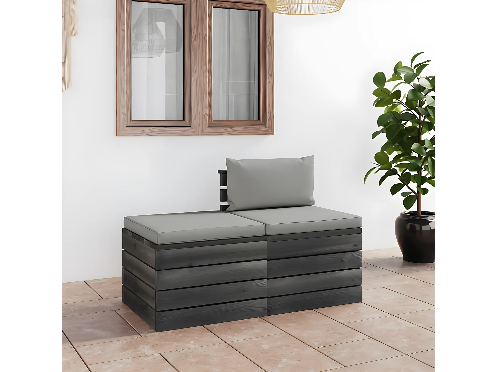 Salon palette de jardin 2 pcs avec coussins Bois de pin massif 18