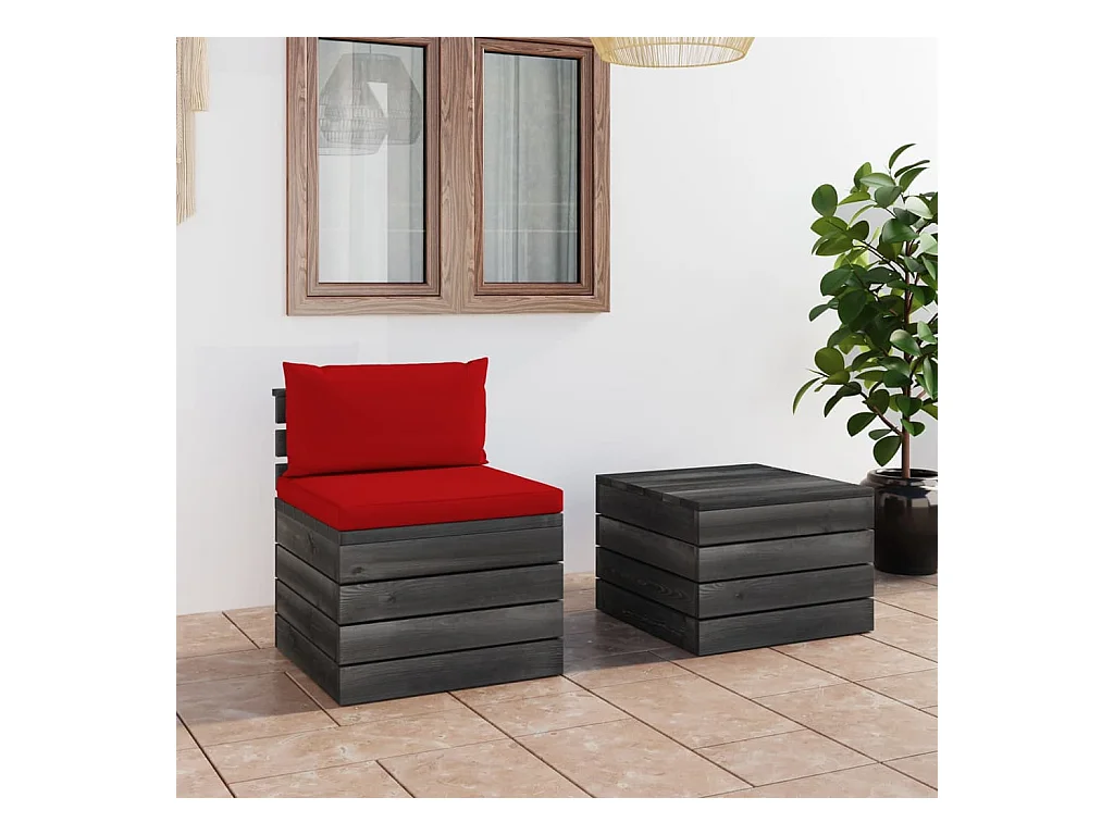 Salon palette de jardin 2 pcs avec coussins Bois de pin massif BE61785