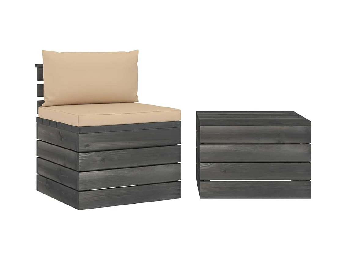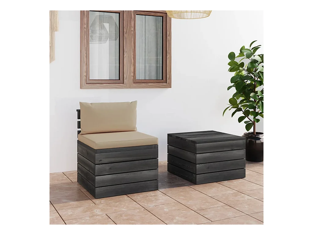 Salon palette de jardin 2 pcs avec coussins Bois de pin massif BE39325