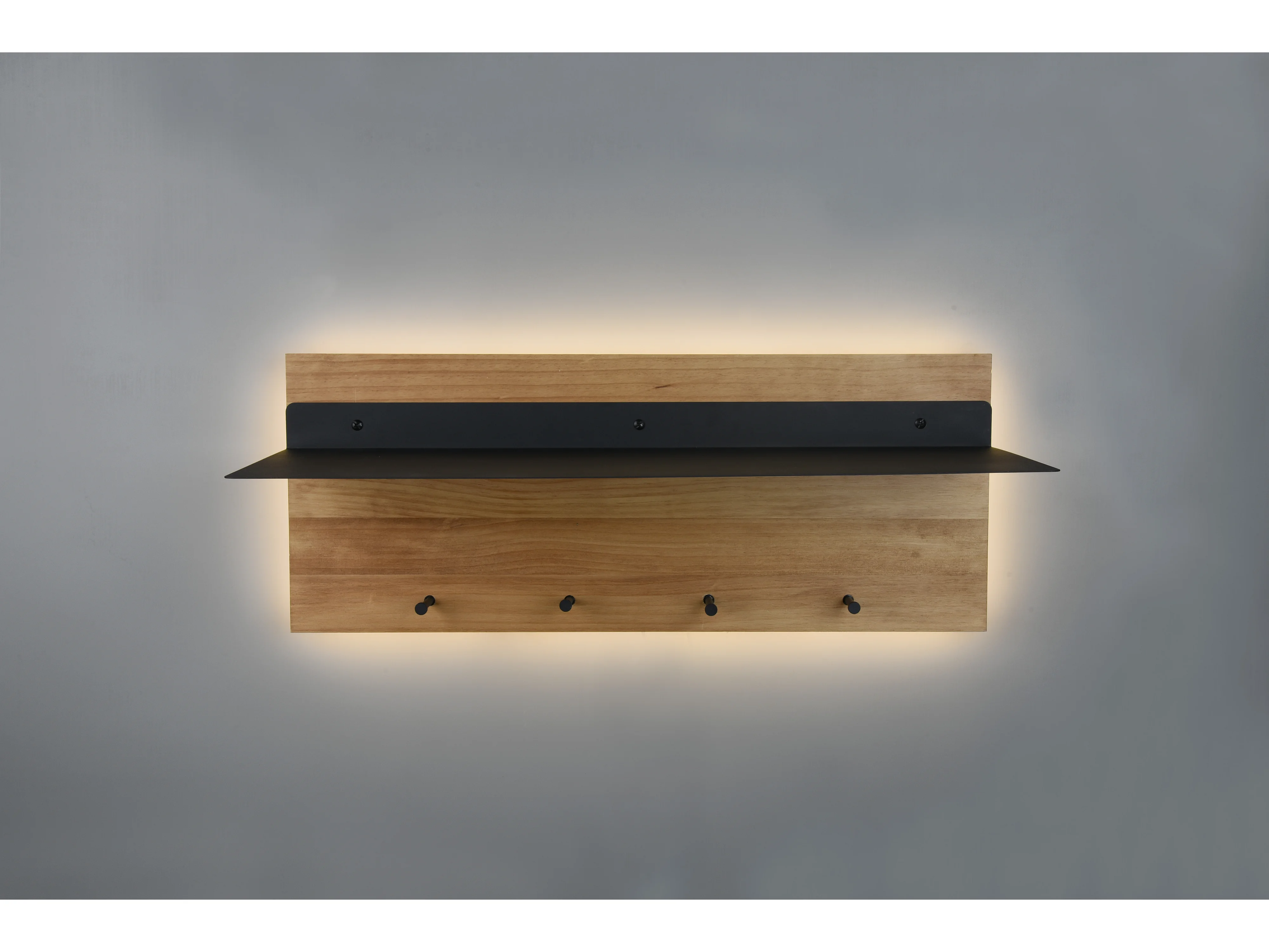Samantha - Panneau d´accrochage mural avec crochets et bande LED - Naturel/Noir - 75x30x29,2cm