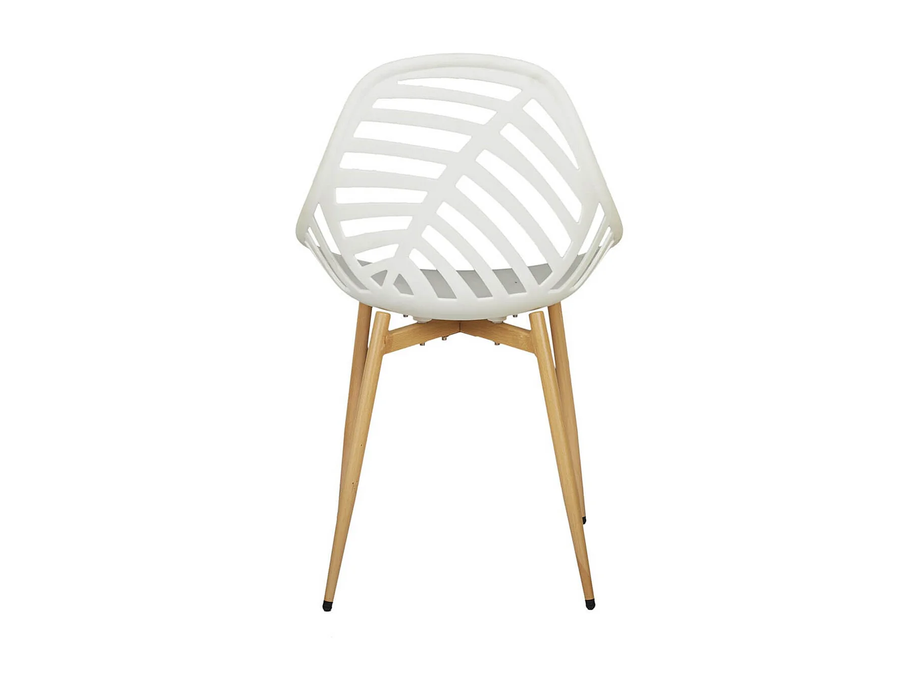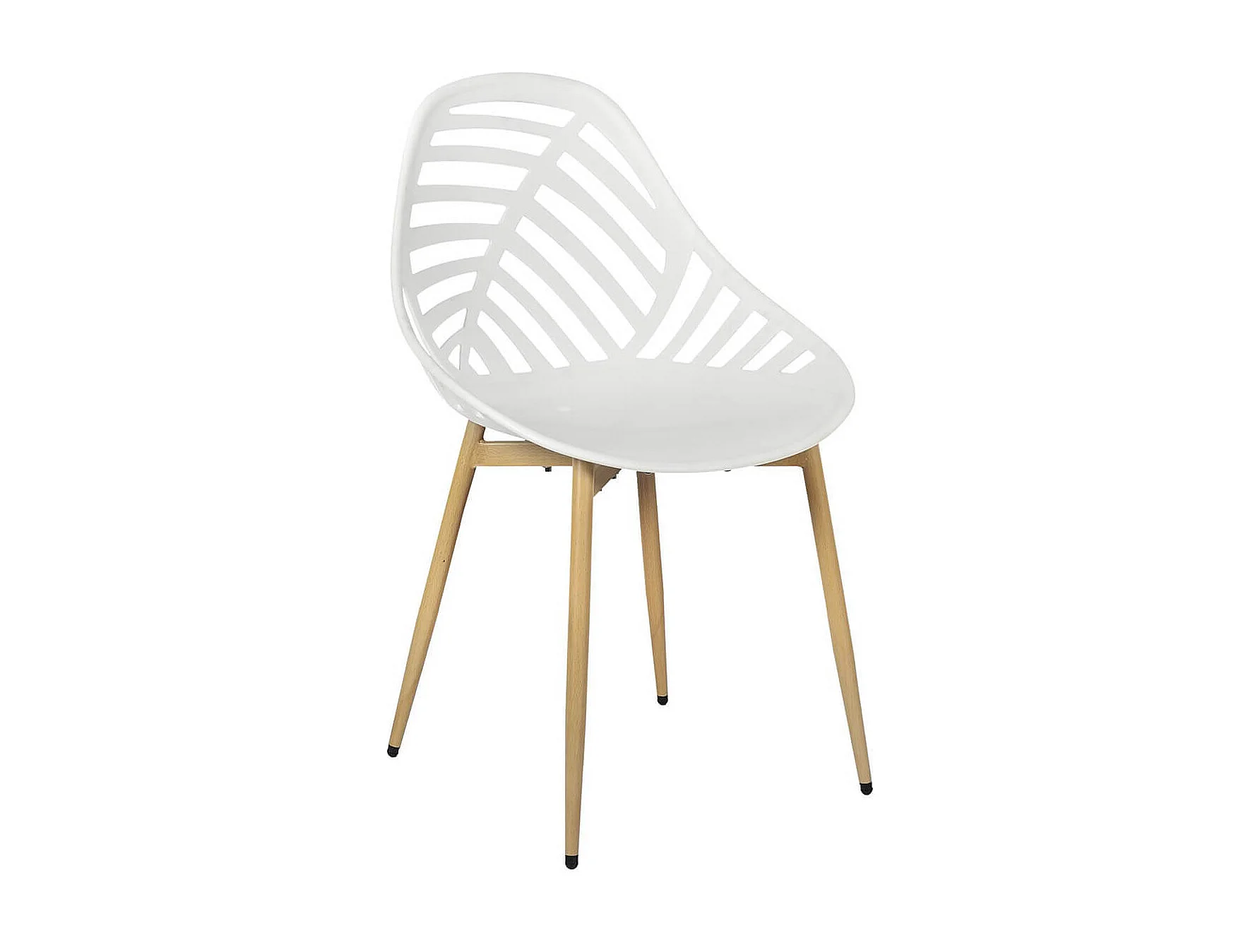 SAORI - Lot de 4 Chaises de Jardin Coque Plastique Ajourée Blanc Pieds Métal