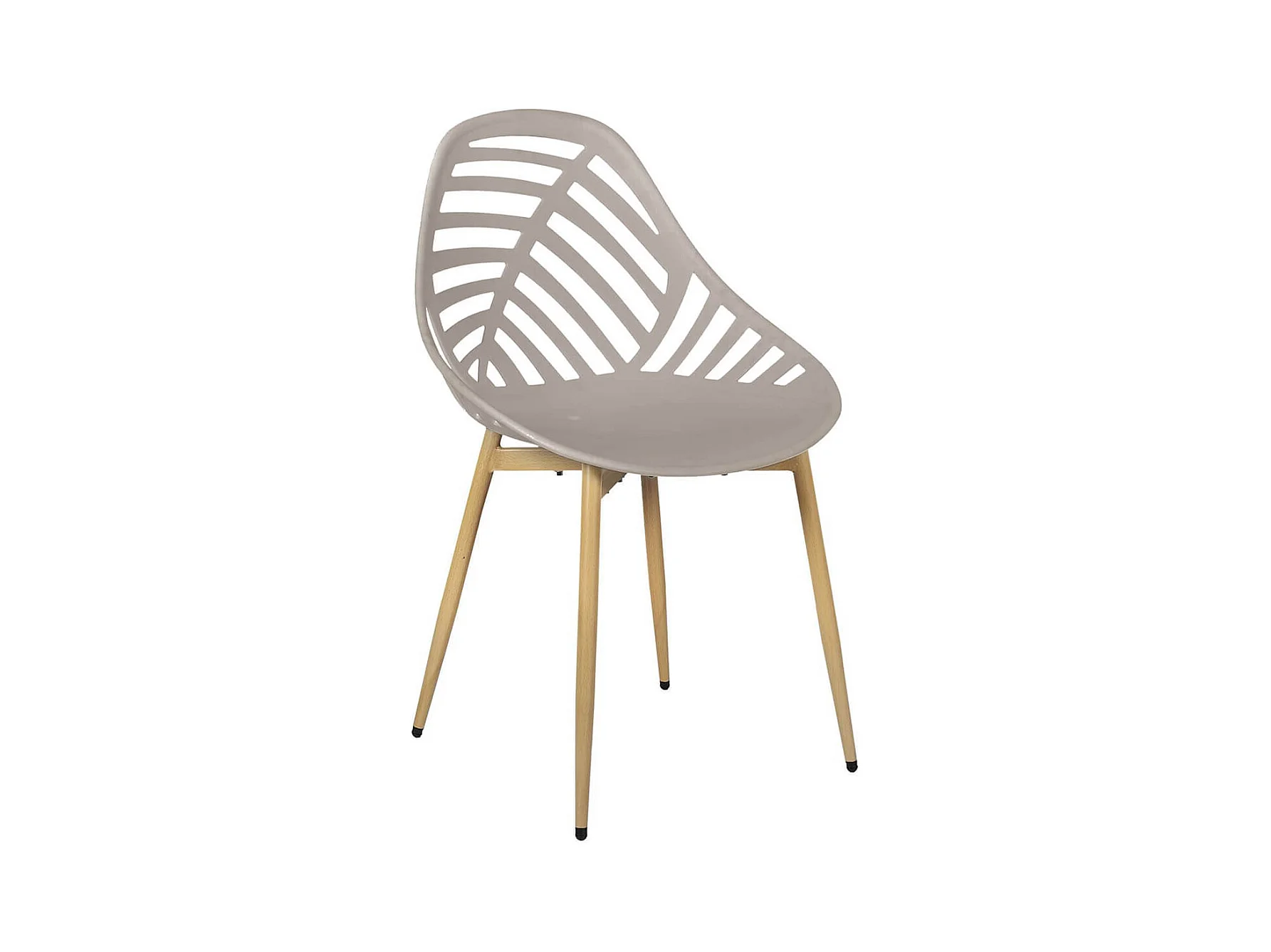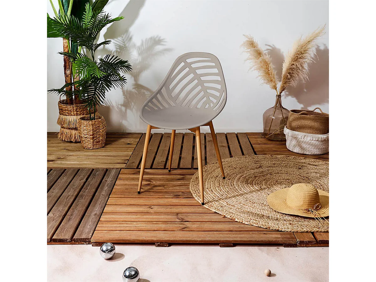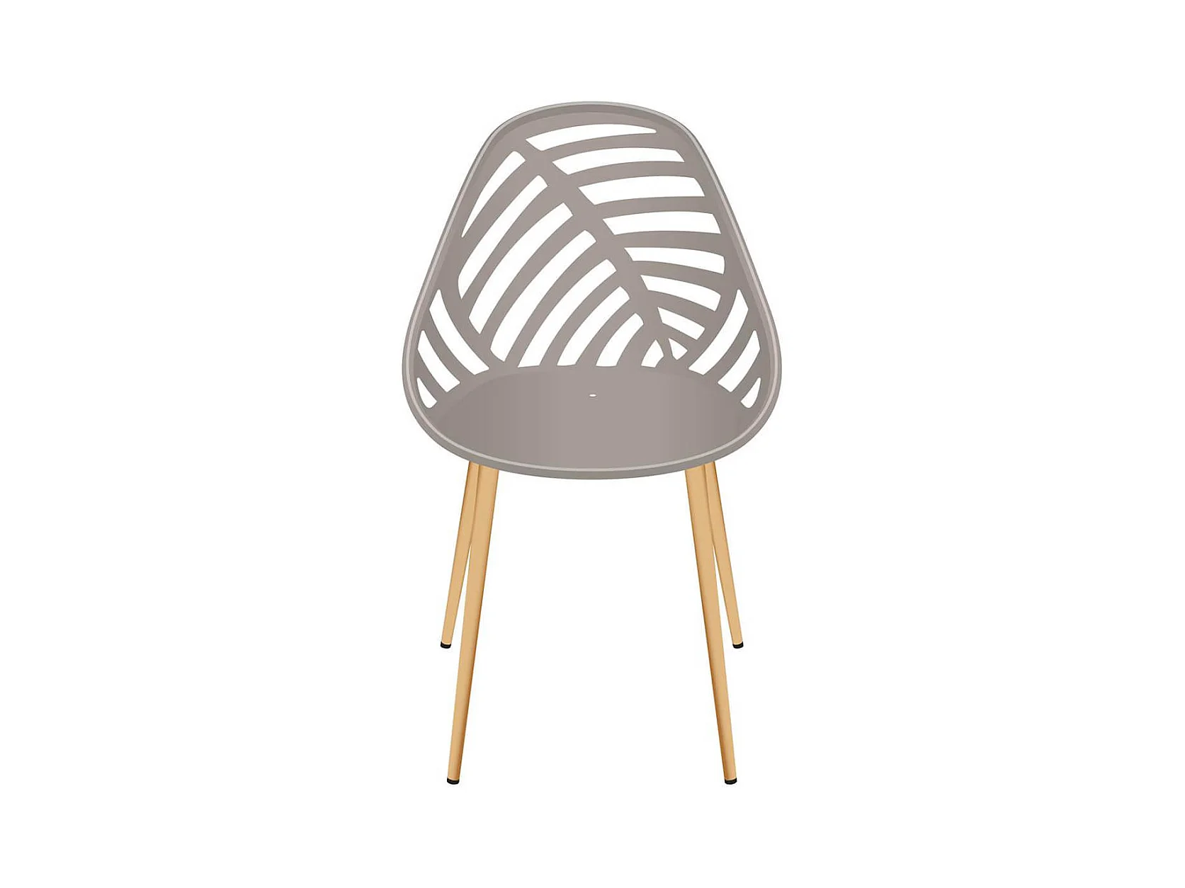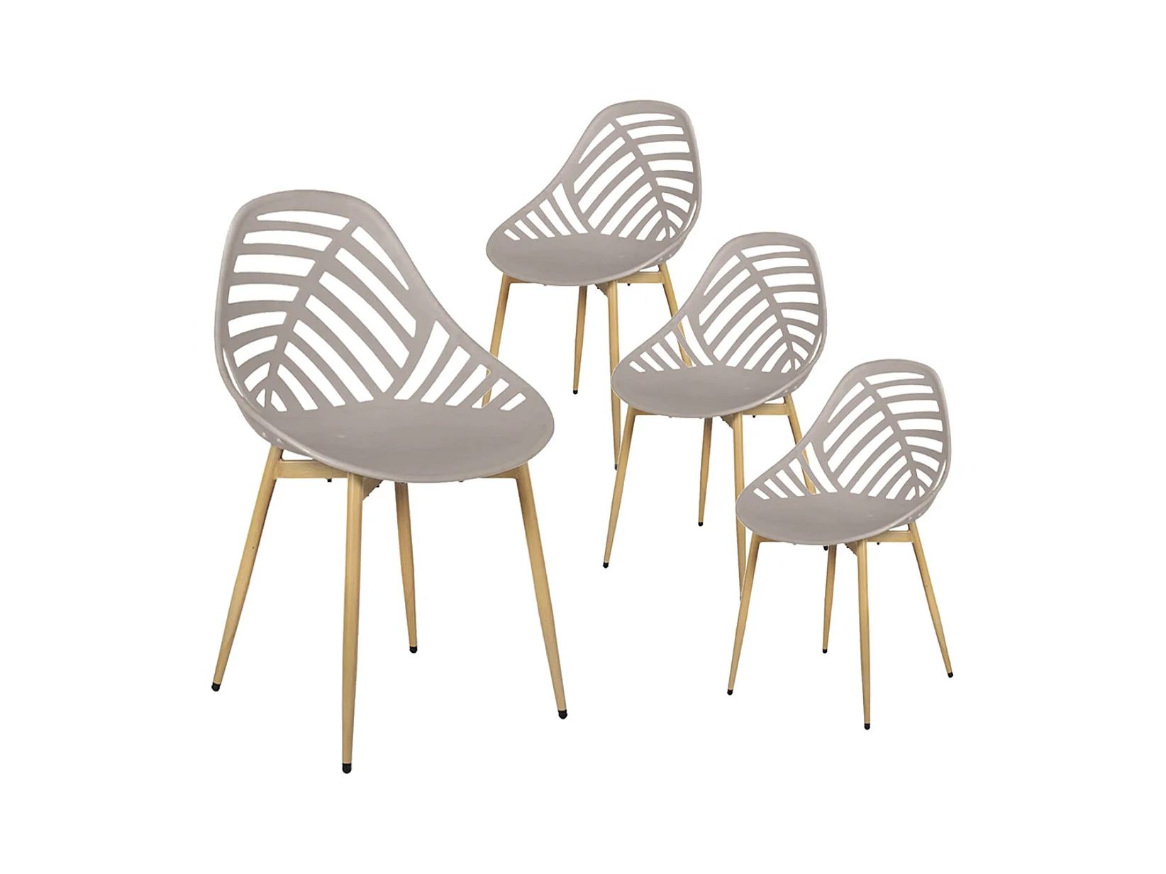 SAORI - Lot de 4 Chaises de Jardin Coque Plastique Ajourée Taupe Pieds Métal