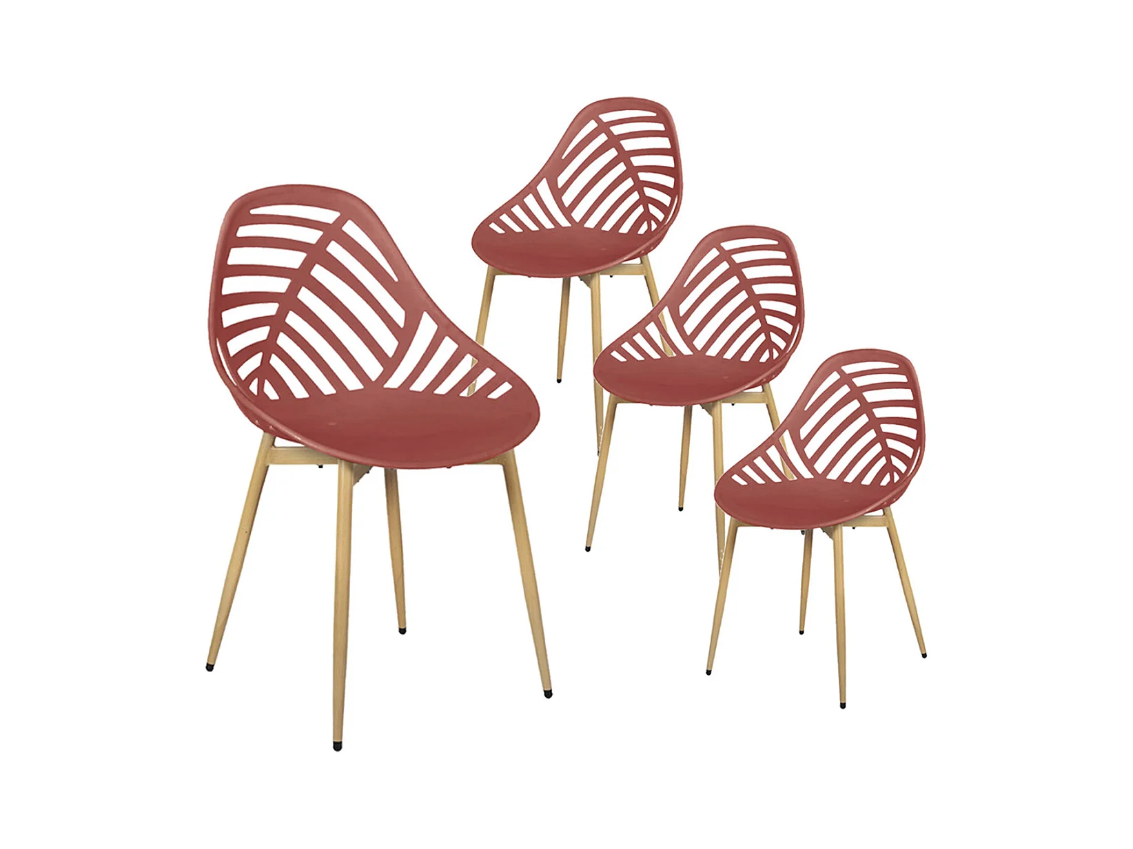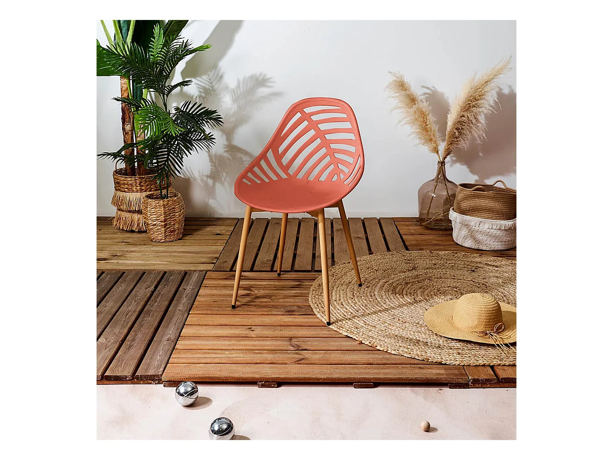 SAORI - Lot de 4 Chaises de Jardin Coque Plastique Ajourée Terracotta Pieds Métal