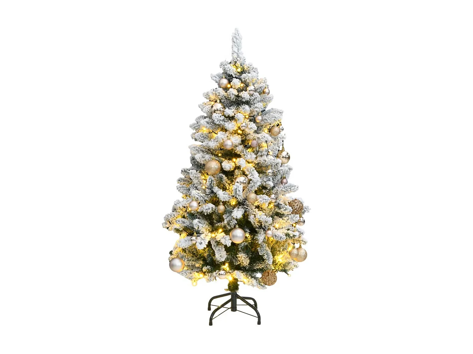 Sapin de Noël artificiel 150 LED&boules&neige floquée 150 cm
