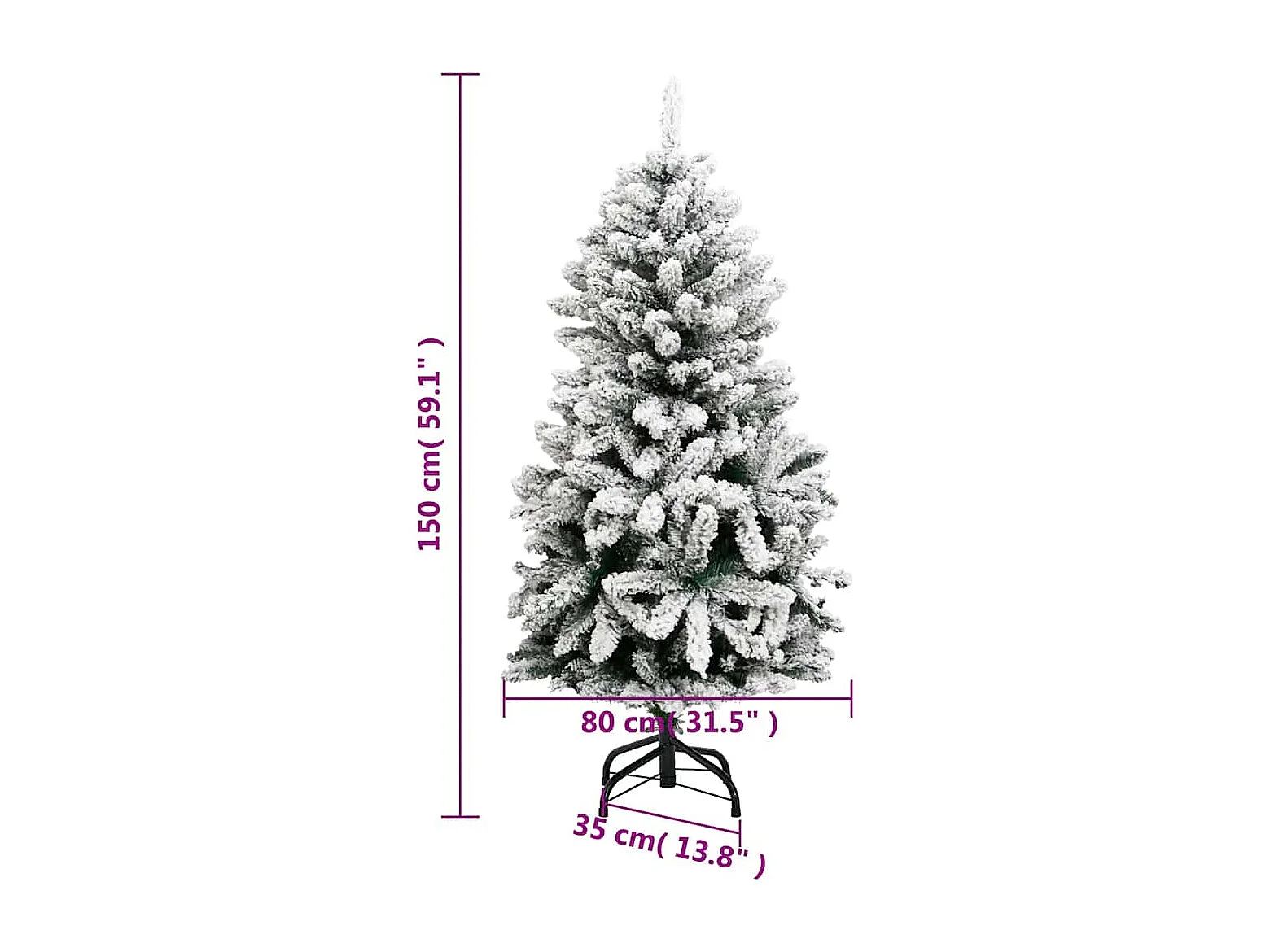Sapin de Noël artificiel mince avec neige floquée 150 cm PVC/PE