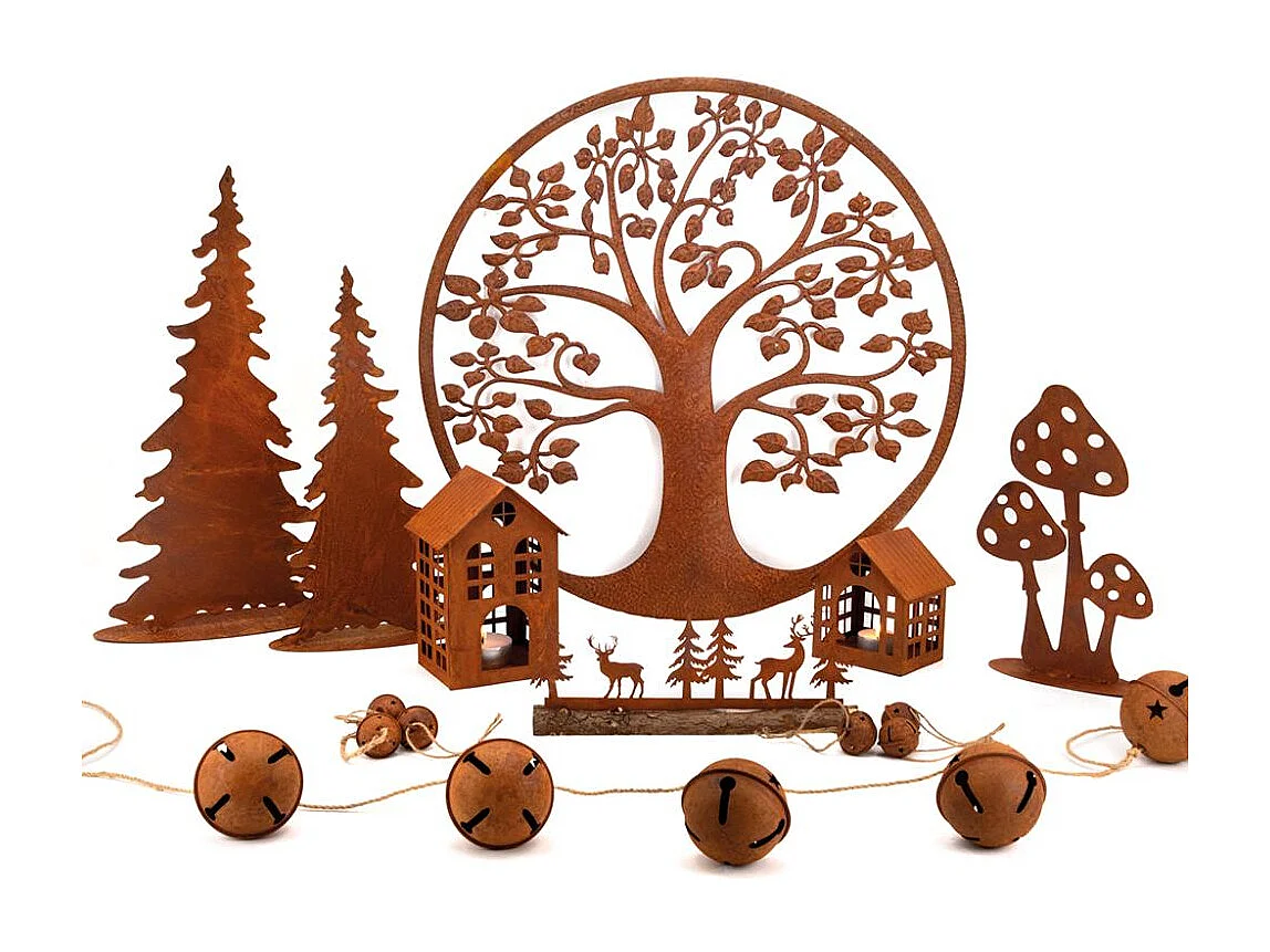 Sapin de Noël décoratif jardin extérieur métal rouillé marron 31x60cm