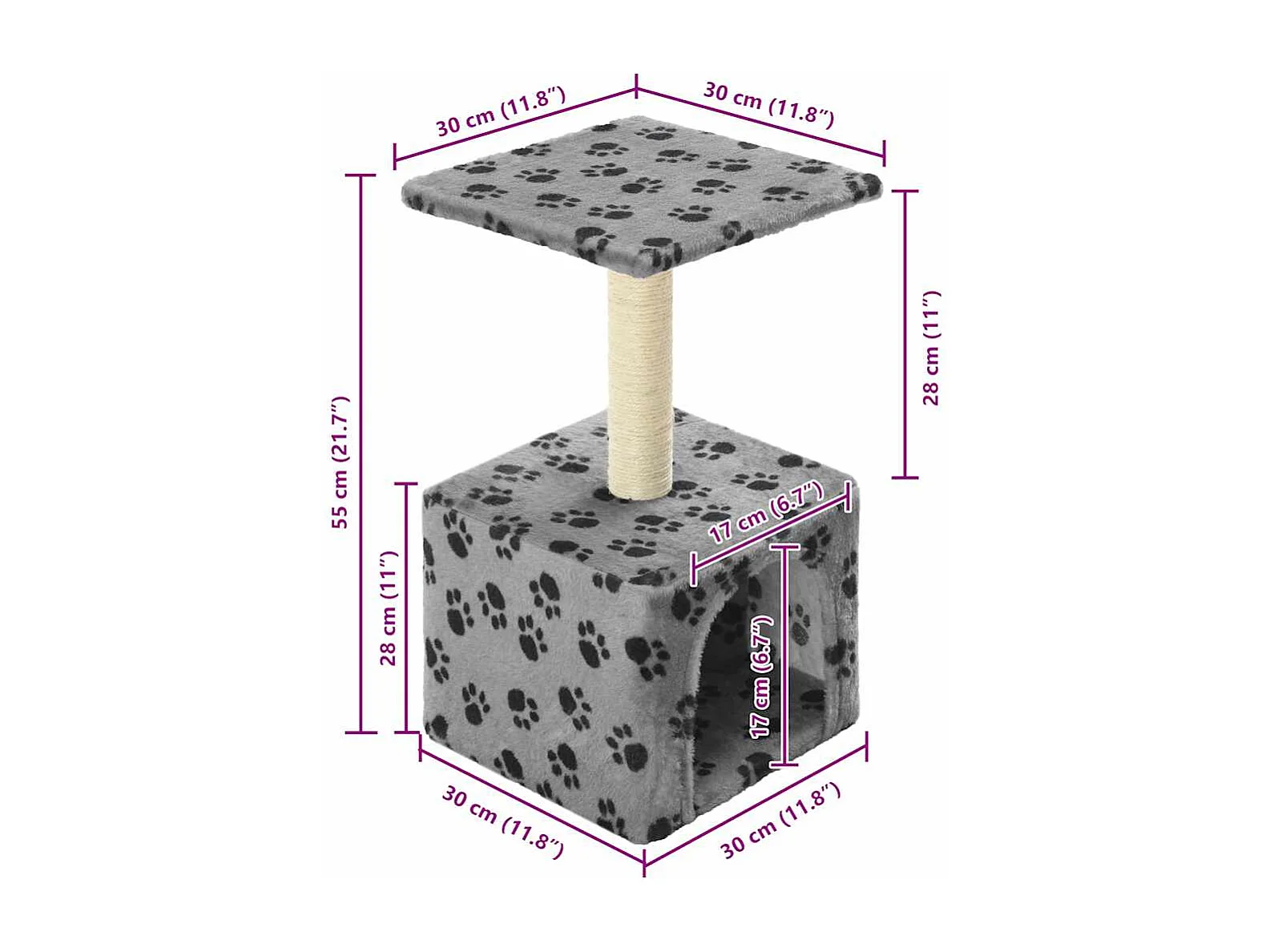 Arbre à chat et griffoir Sisal 65 cm Empreintes de pattes Gris OFR25762 BonneVie Meuble