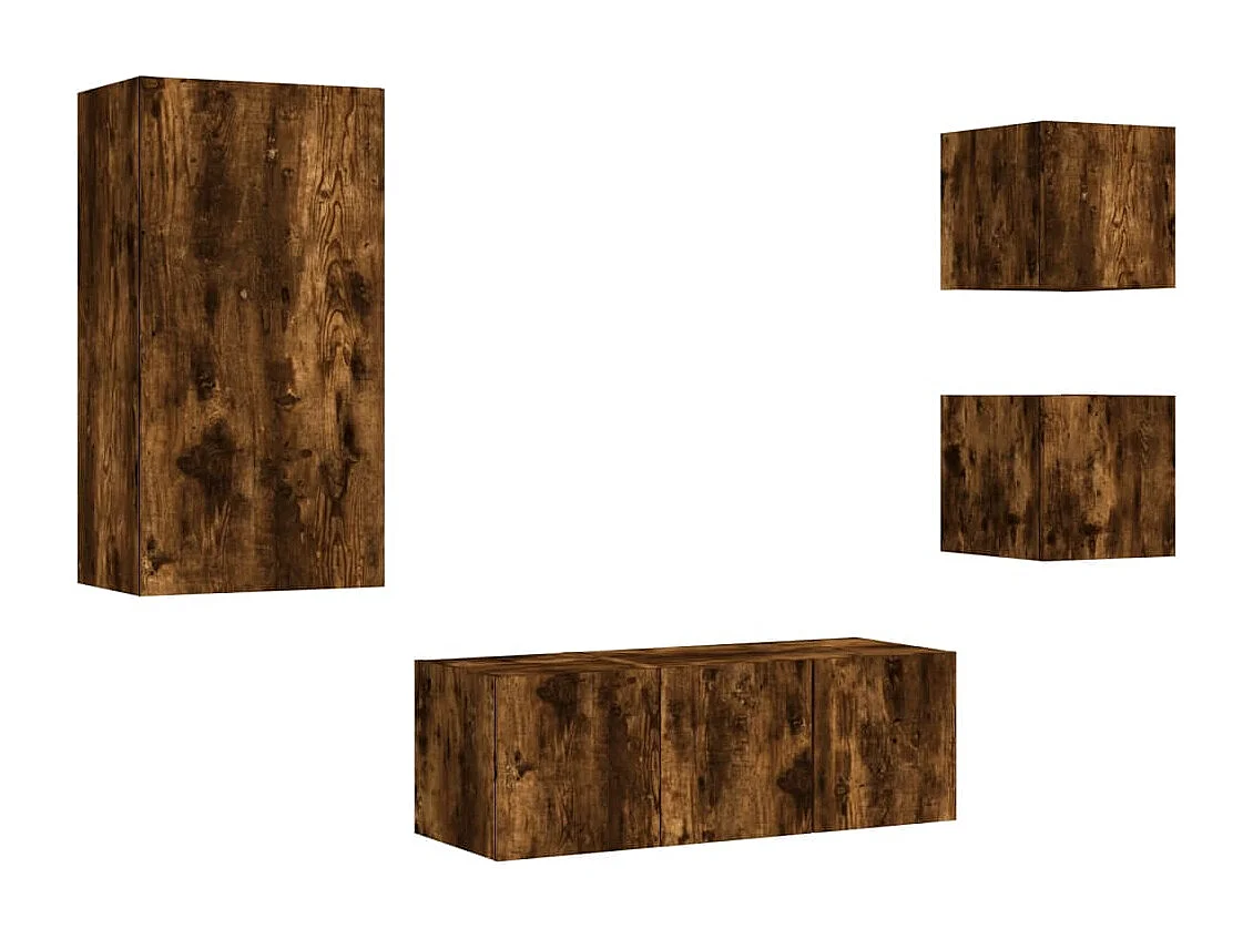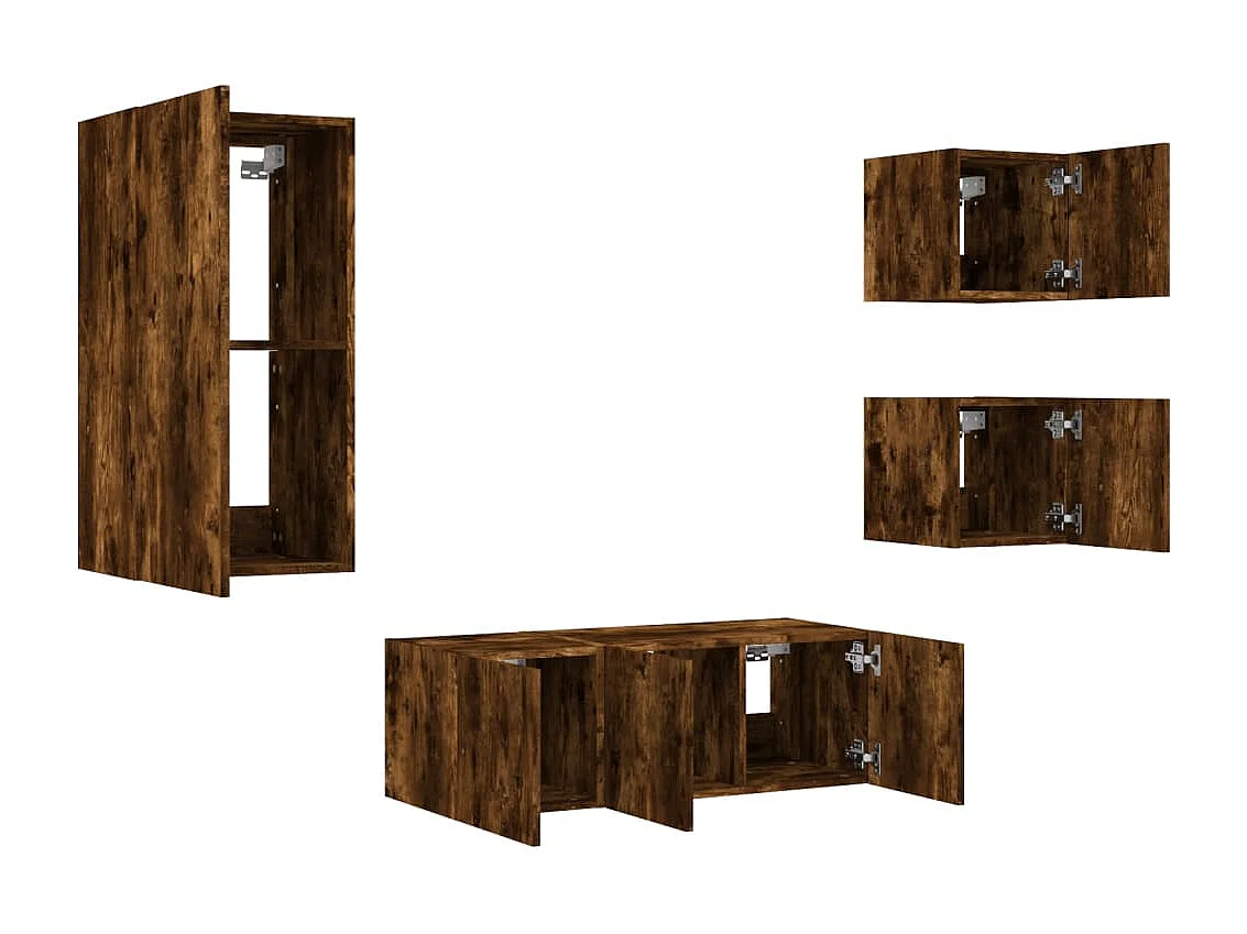 Sart-Saint-Laurent Unités murales TV avec LED 5 pcs chêne fumé bois d'ingénierie