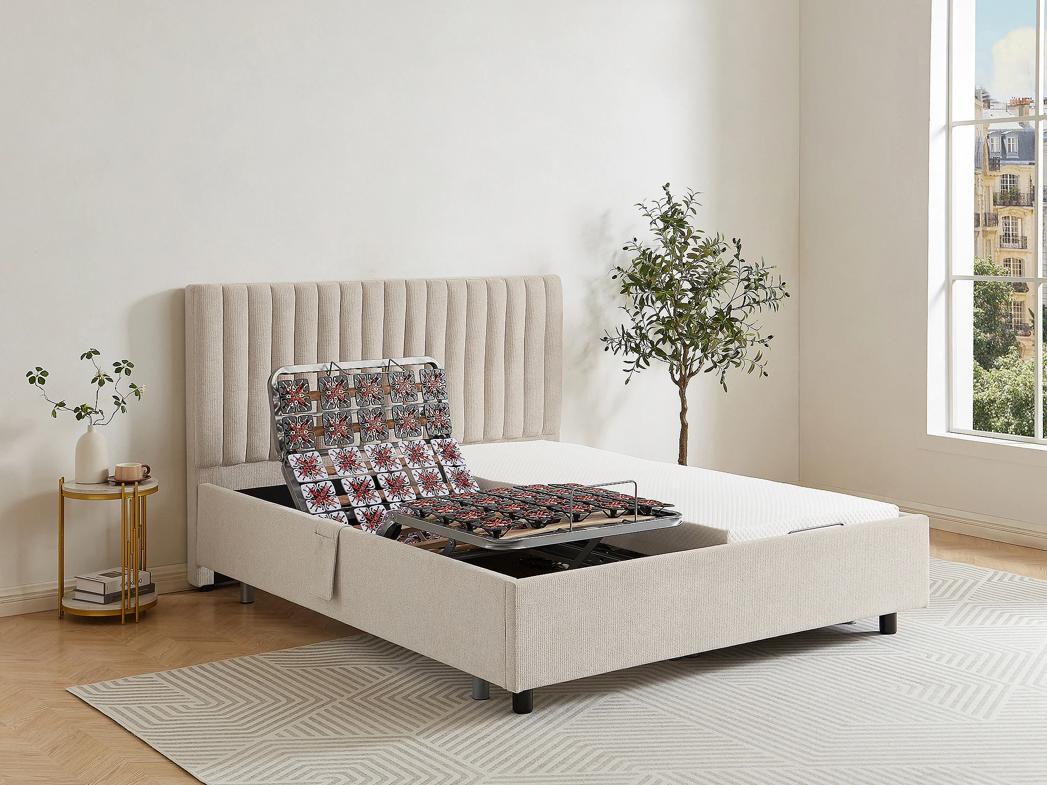 Lit électrique de relaxation déco tout plots + matelas mémoire de forme - 2 x 90 x 200 cm - Tissu - Beige - SASORA de YSMÉE