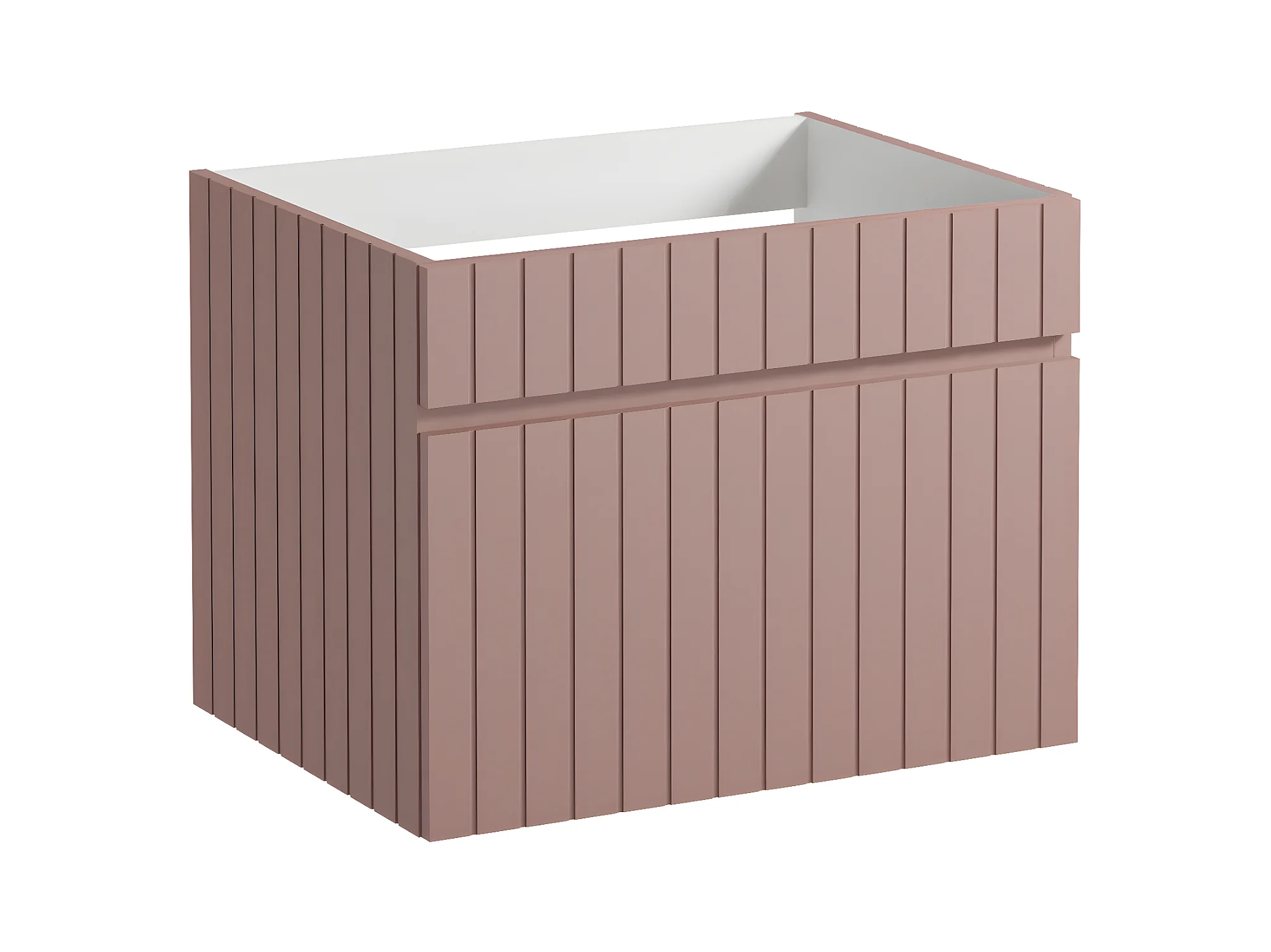 Meuble de salle de bain suspendu strié rose avec vasque à encastrer et colonne - 60 cm - SATARA