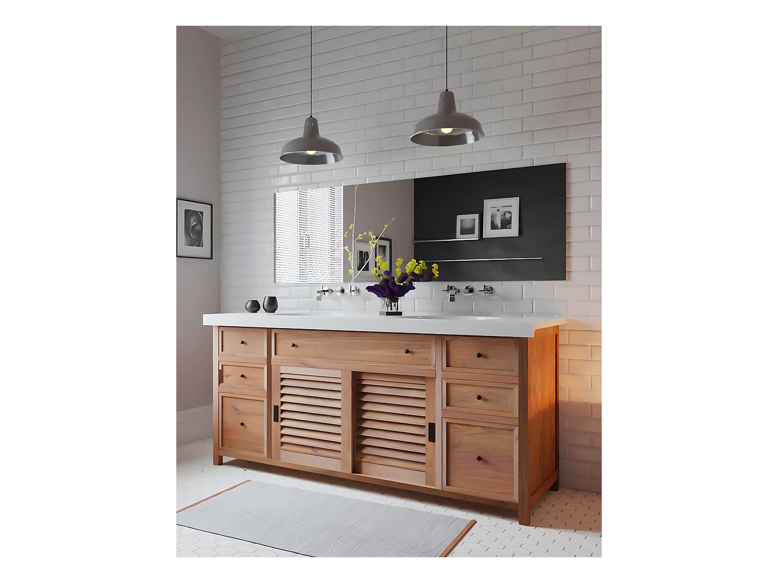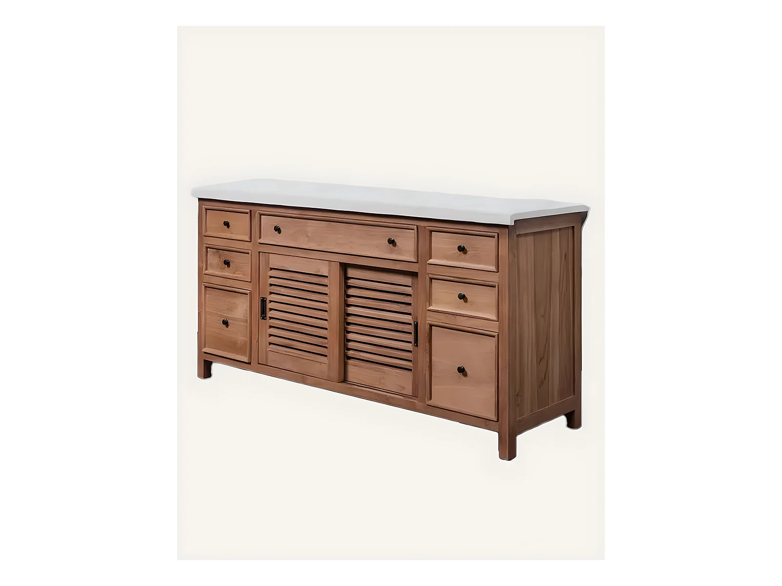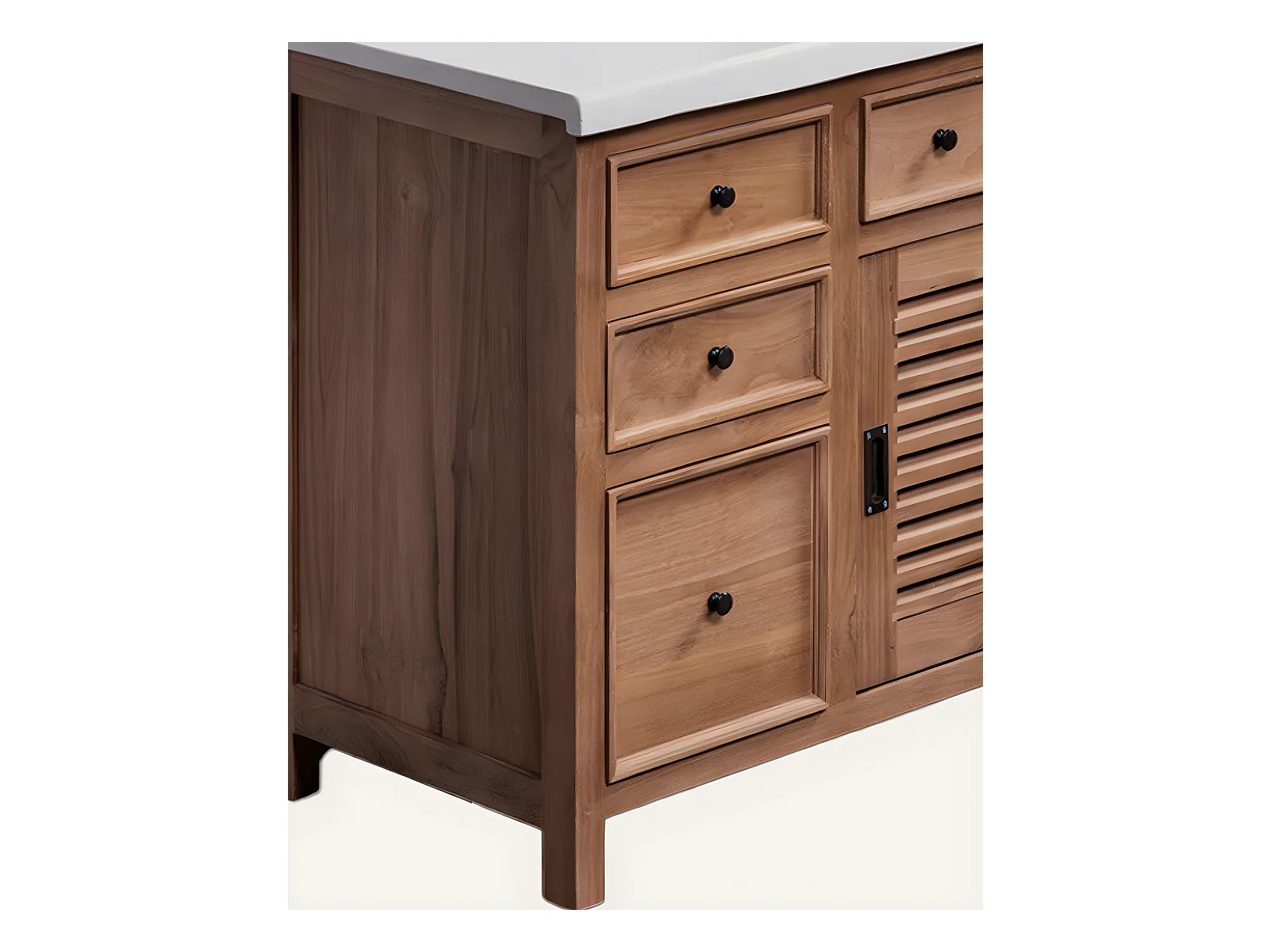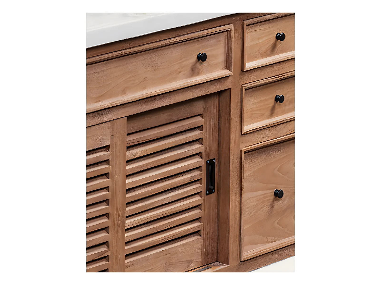 Savanna - Meuble De Salle De Bain en teck avec marbre terrazzo
