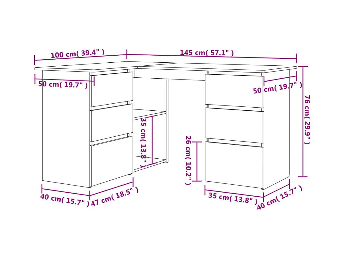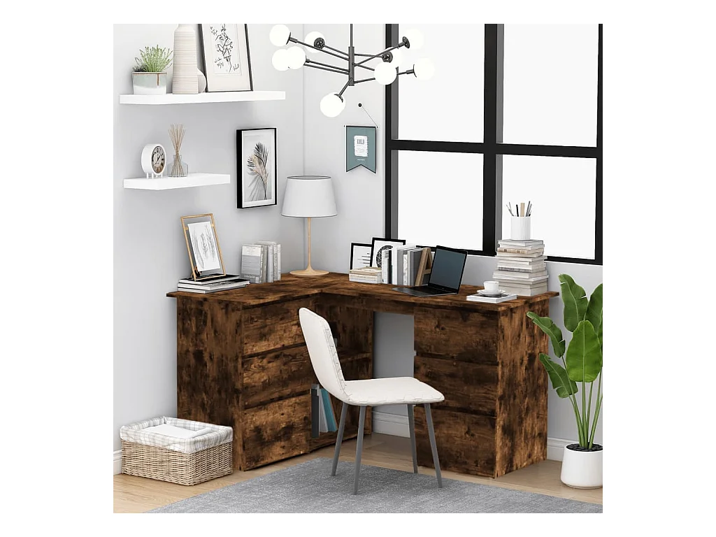 Savukoski Bureau d'angle Chêne fumé 145x100x76 cm Bois d'ingénierie