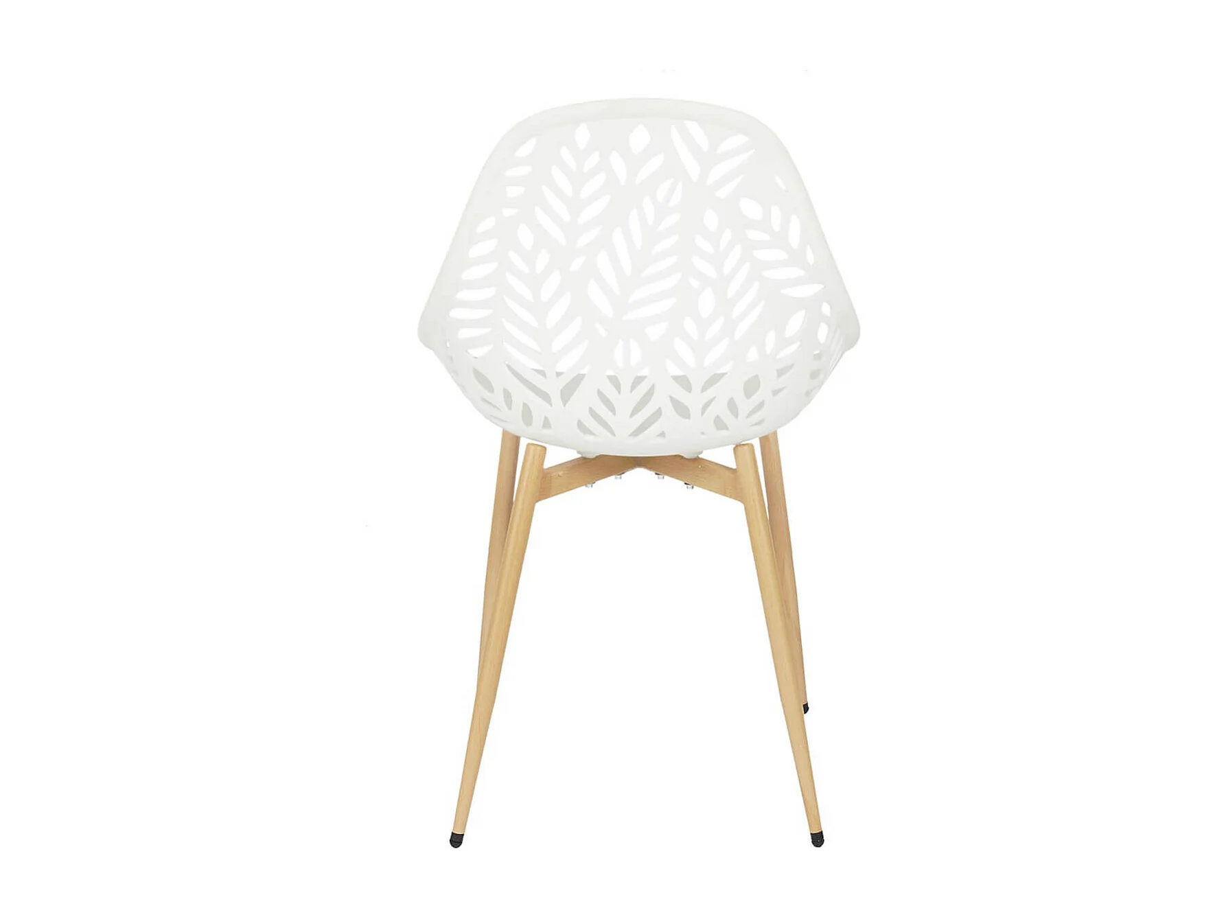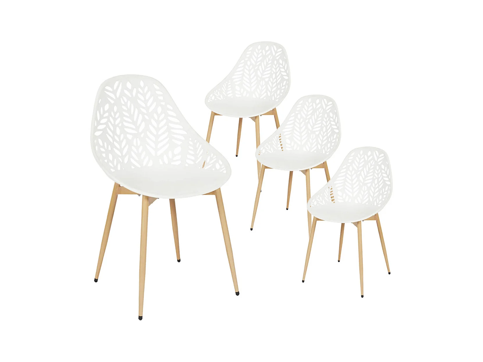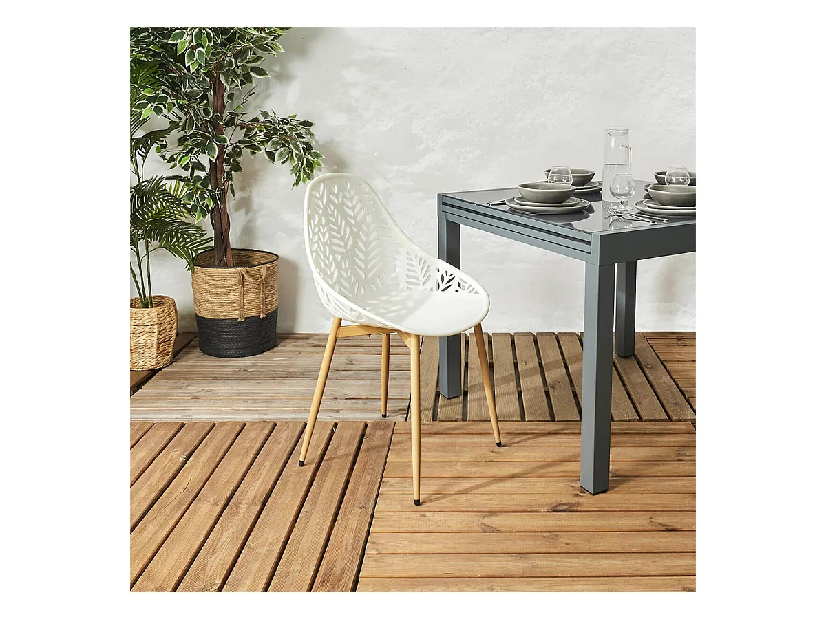 SAORI - Lot de 4 Chaises de Jardin Coque Plastique Ajourée Blanc Pieds Métal