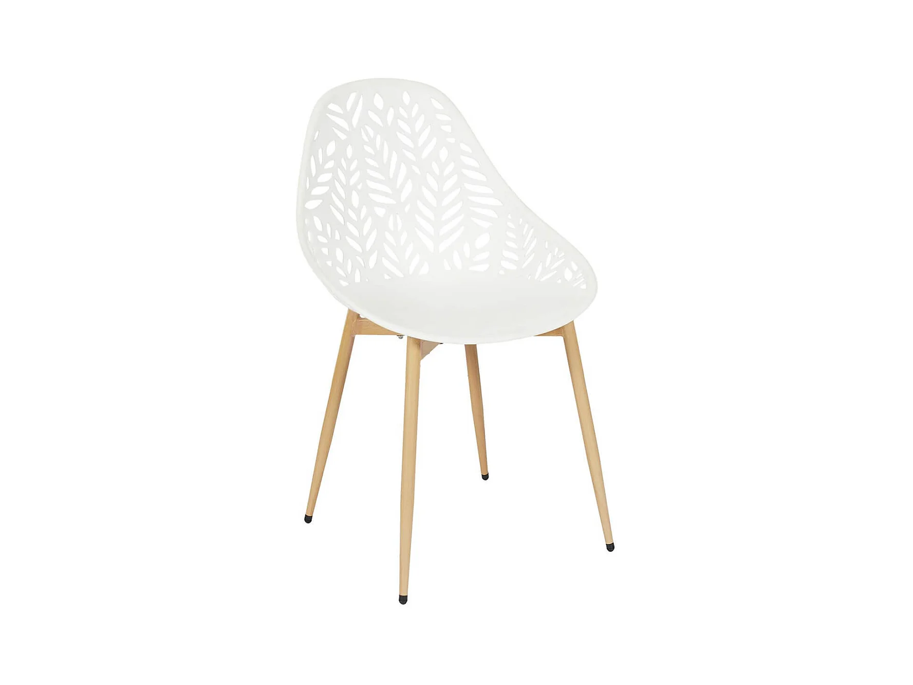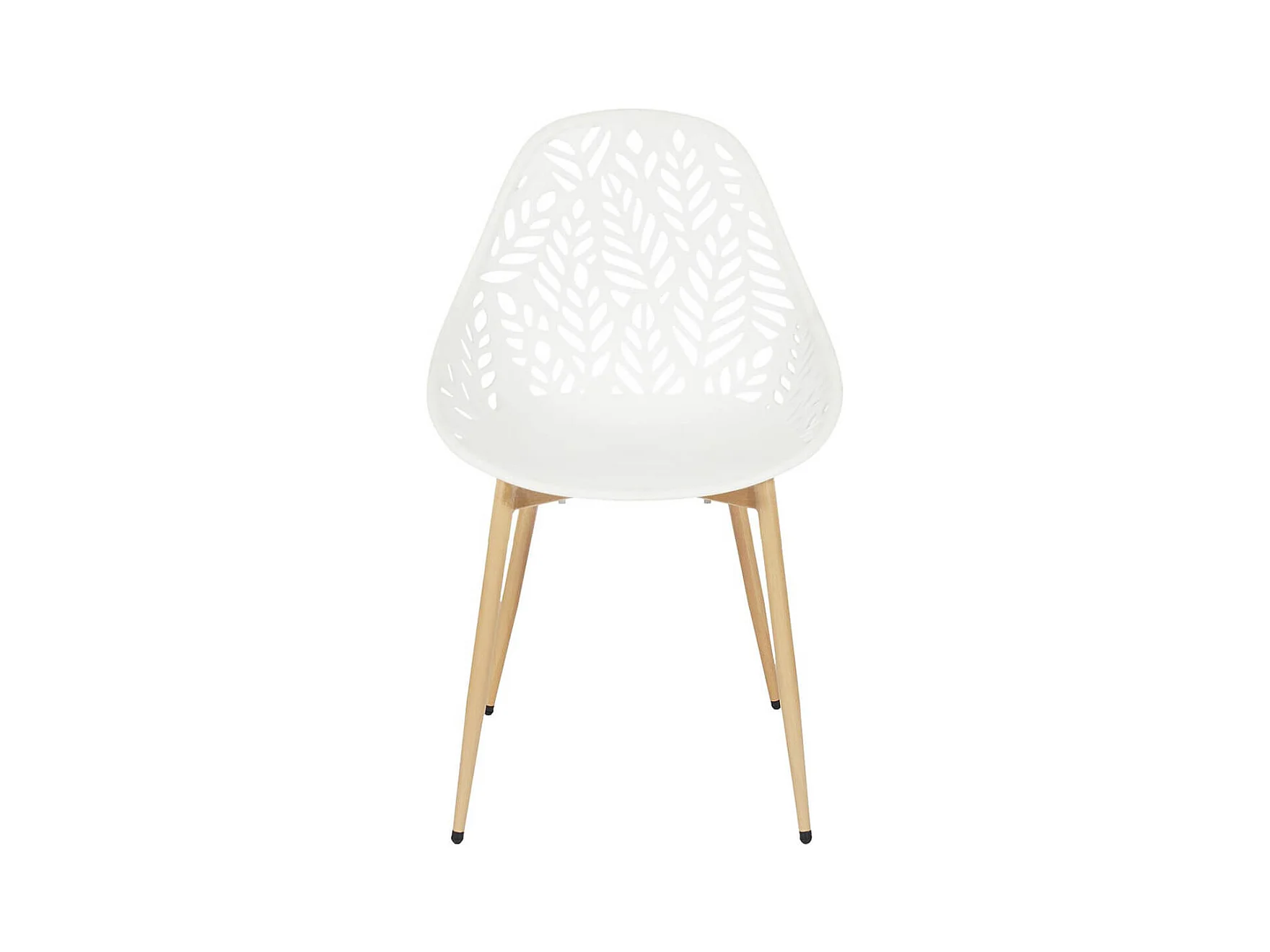 SAYA - Lot de 4 Chaises de Jardin Coque Plastique Ajourée Blanc Pieds Métal