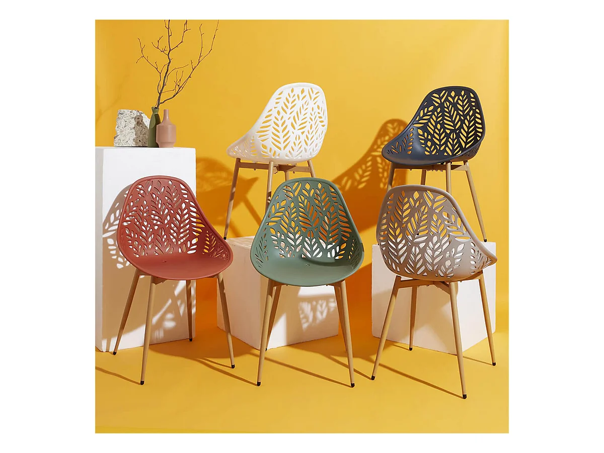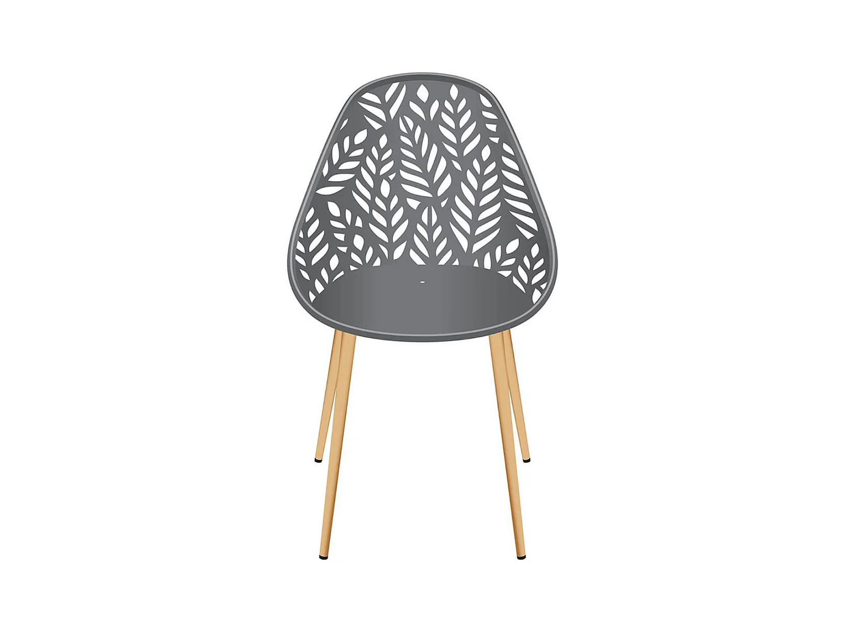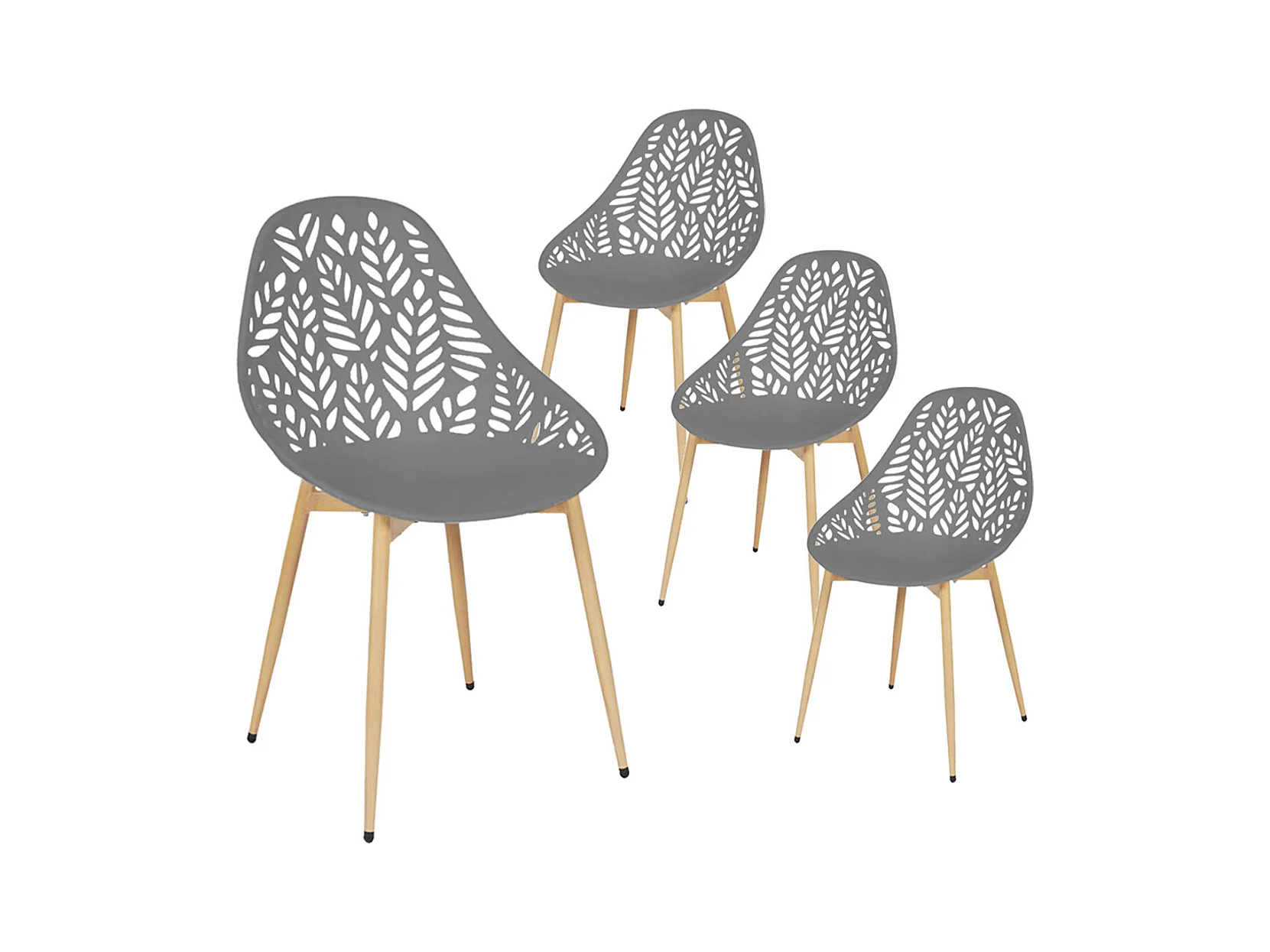 SAYA - Lot de 4 Chaises de Jardin Coque Plastique Ajourée Gris Pieds Métal