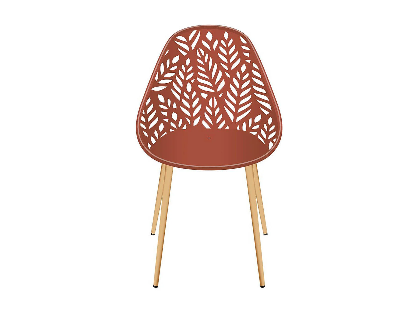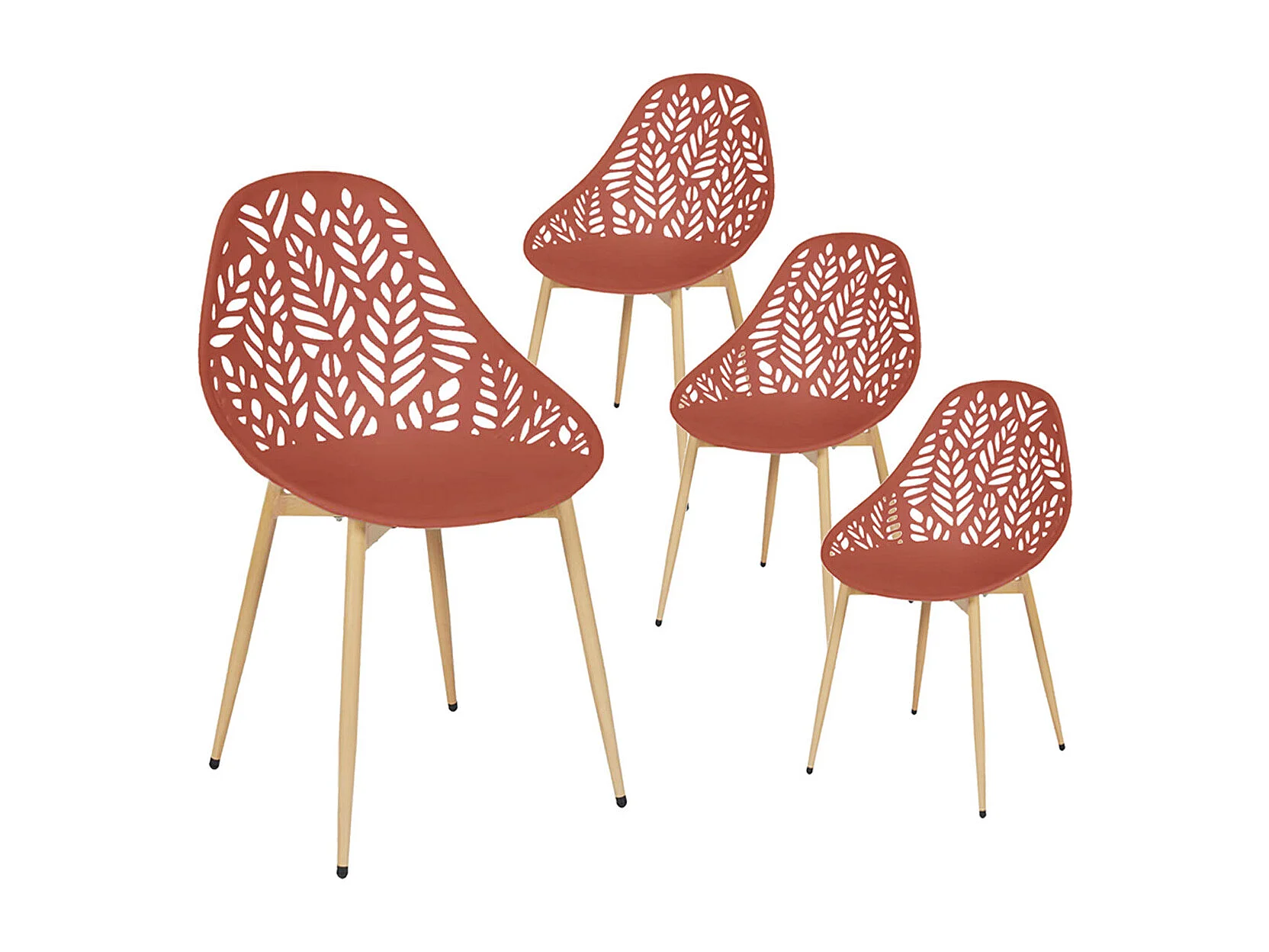 SAORI - Lot de 4 Chaises de Jardin Coque Plastique Ajourée Terracotta Pieds Métal