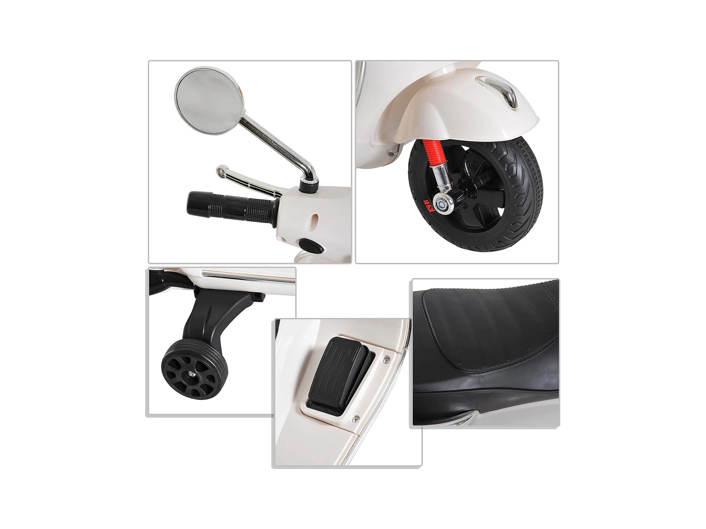 Scooter moto électrique enfant Vespa 6V 30W 2 roulettes auxiliaires effets sonores lumineux crème