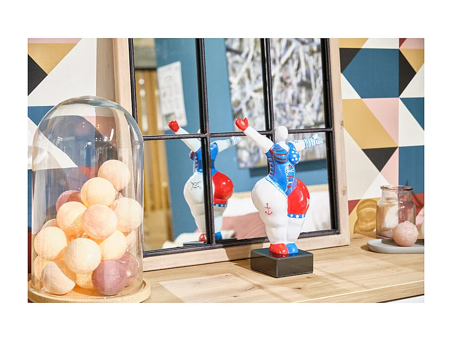Statue femme jambe levée avec motif bleu et rouge H33 cm - LADY PIRATE