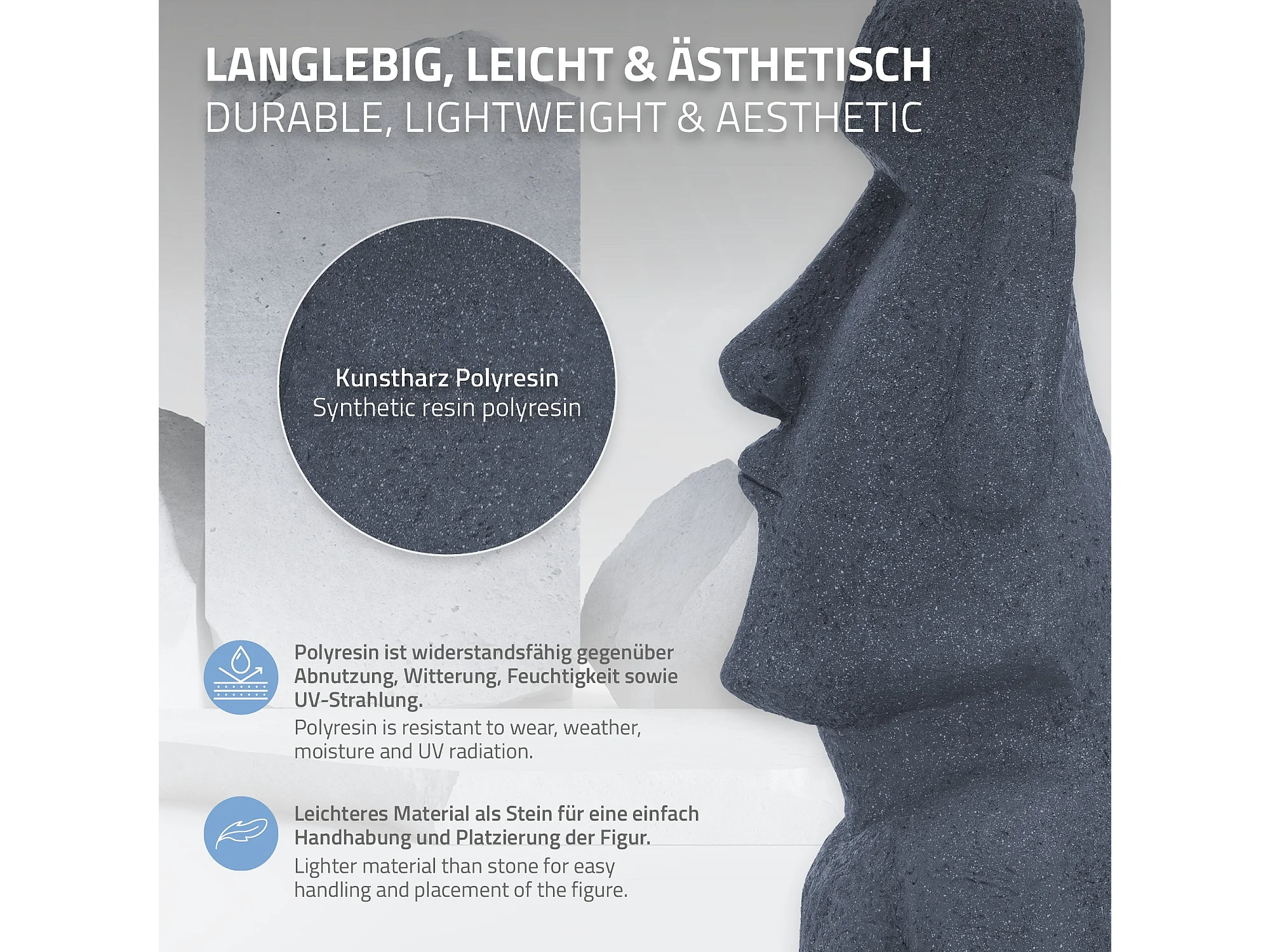 Statue déco tête moaï île de Pâques en résine figurine anthracite aspect basalte