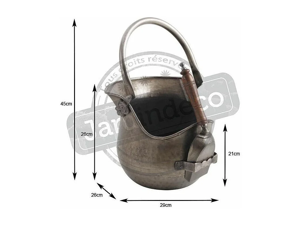 Seau à cendres avec pelle en étain antique