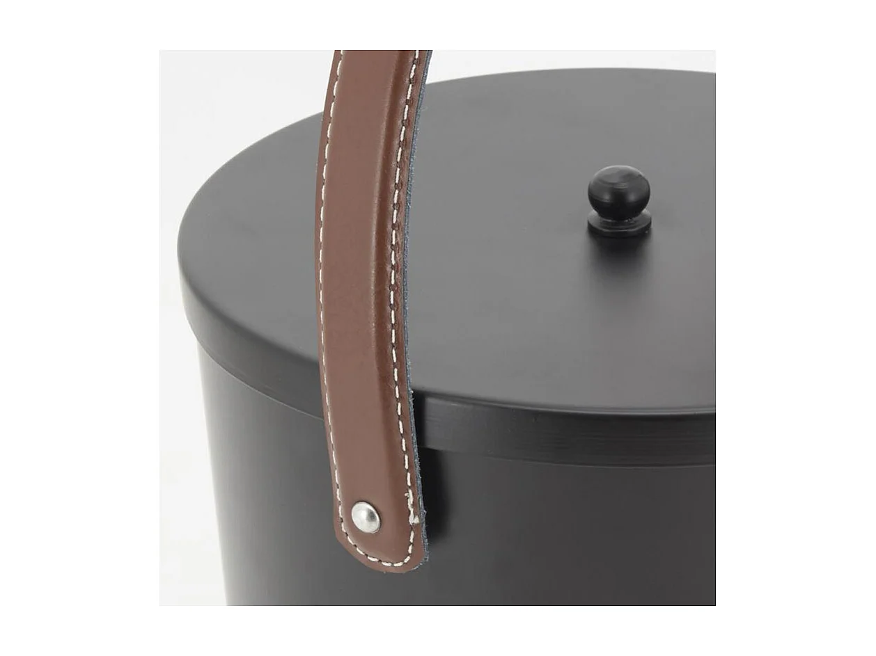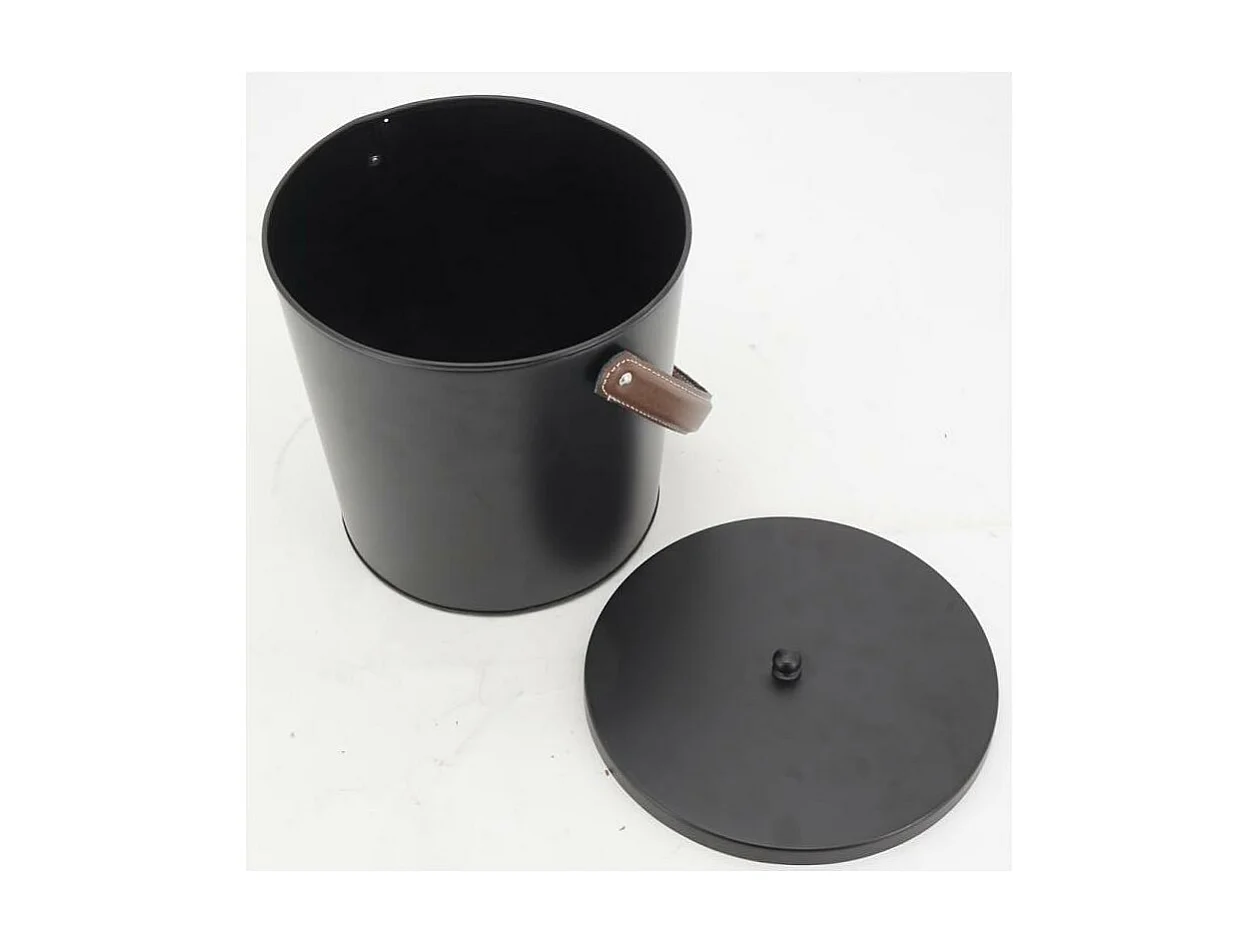 Seau à cendres en métal noir et cuir