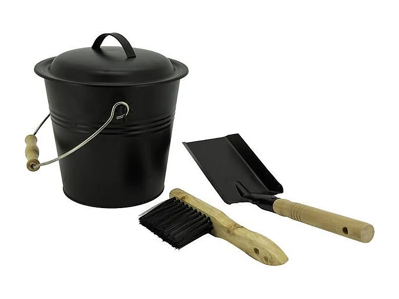 Brosse et pelle pour cheminée en métal noir 29x10x12h