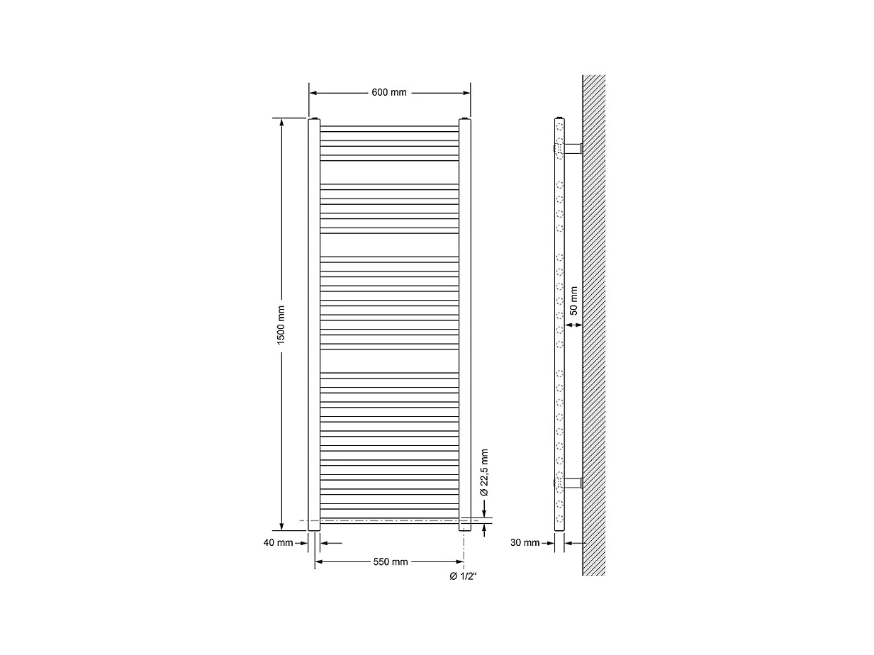 Sèche-serviettes droit 600 x 1500 mm blanc électrique 1200W