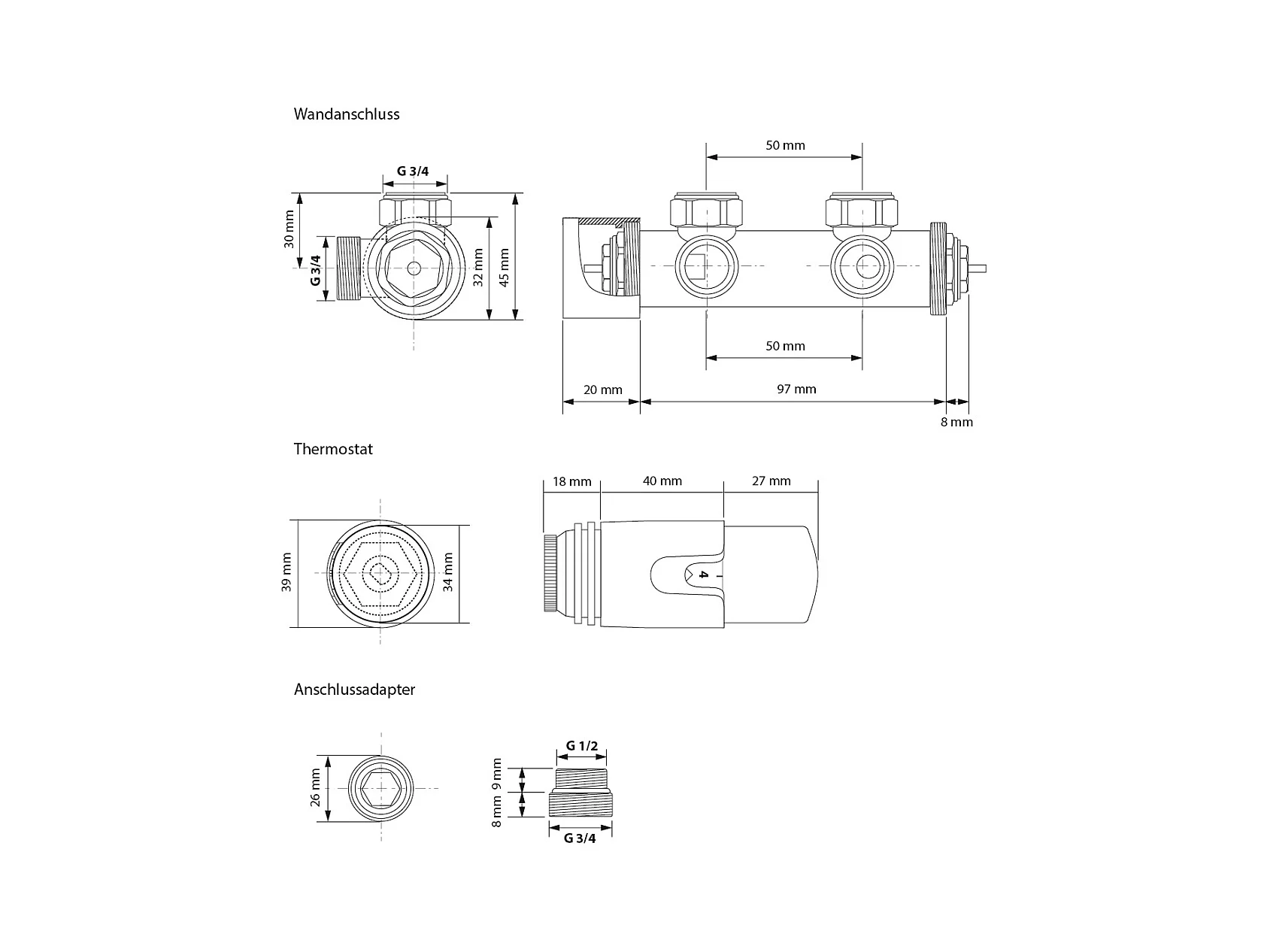Sèche-Serviettes Sahara Non Électrique, 600 x 800 mm, Blanc, Connexion Central