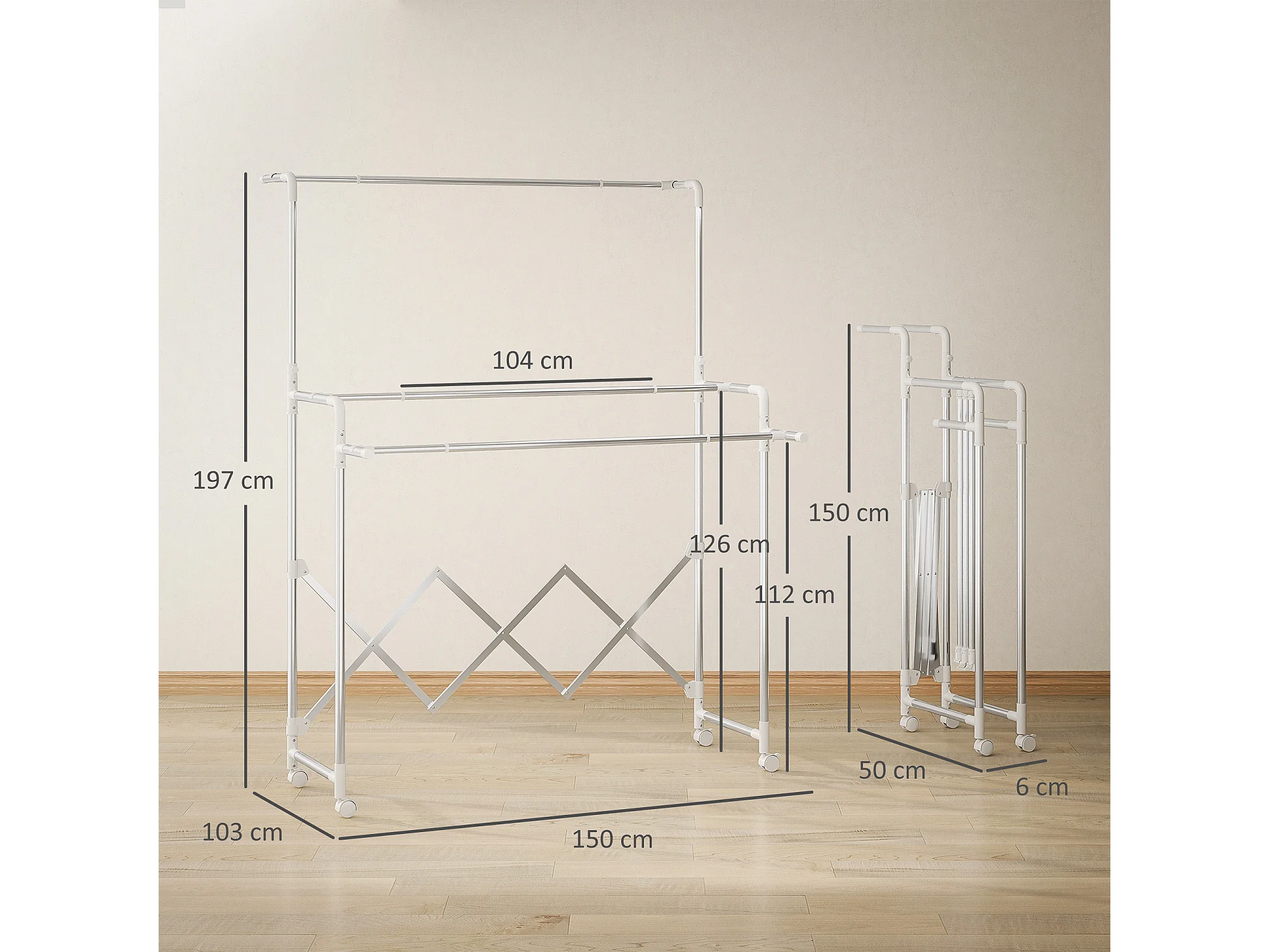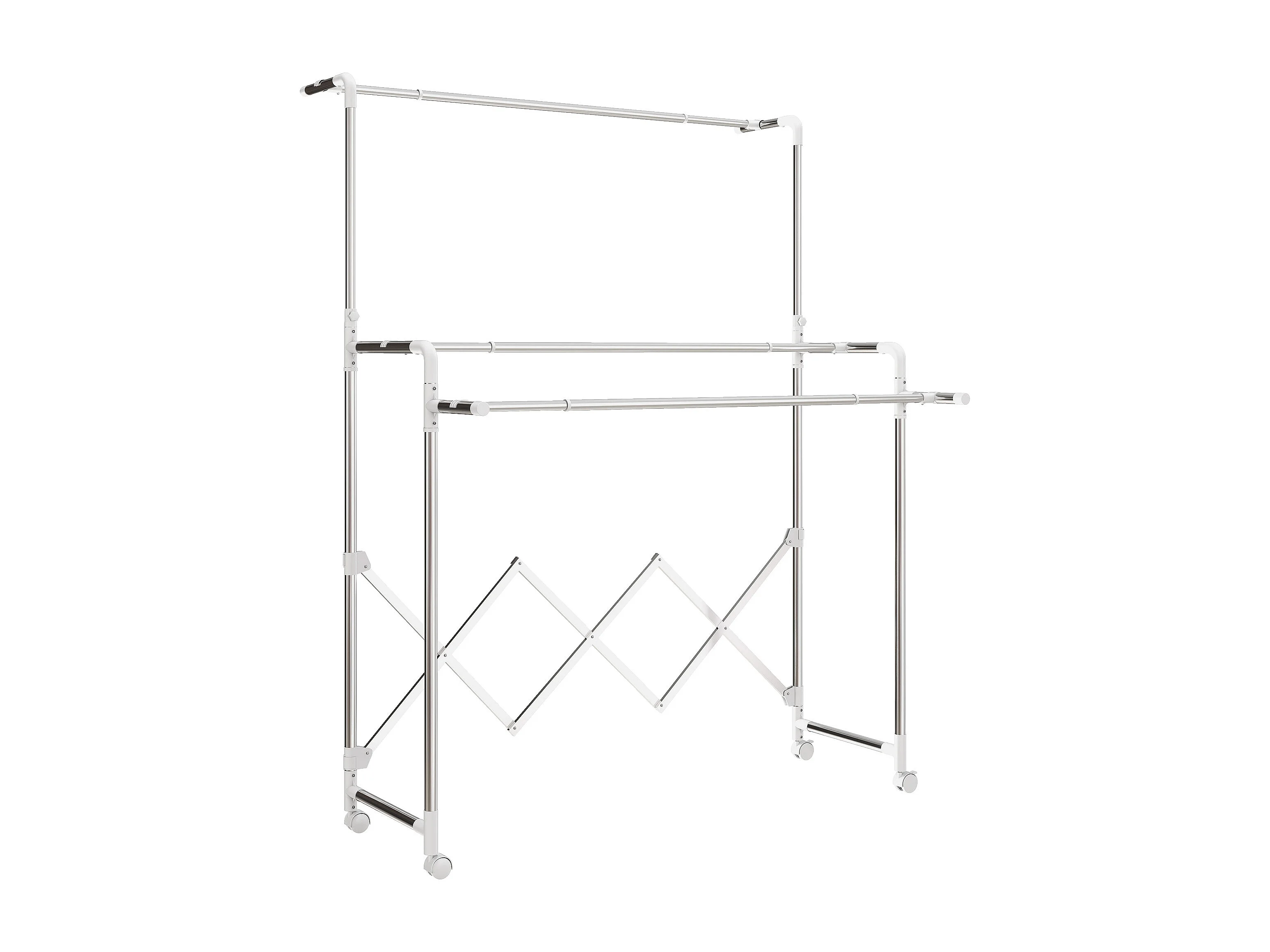Séchoir à linge pliable réglable étendoir 3 barres 4 roulettes dim. L.104-150 x P.103 x H.145-197 cm acier inox