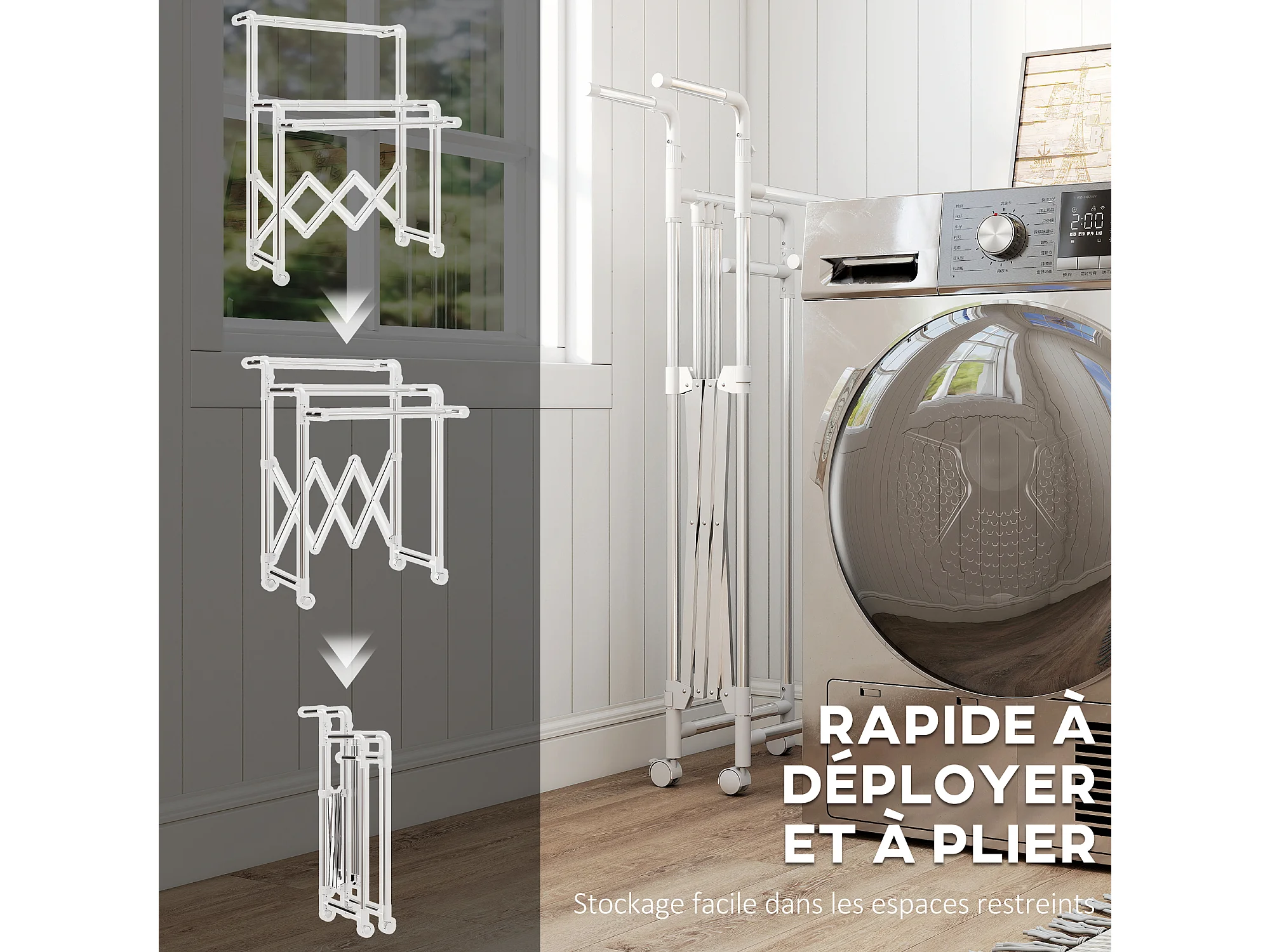Séchoir à linge étendoir pliable ailes latérales sur 4 niveaux