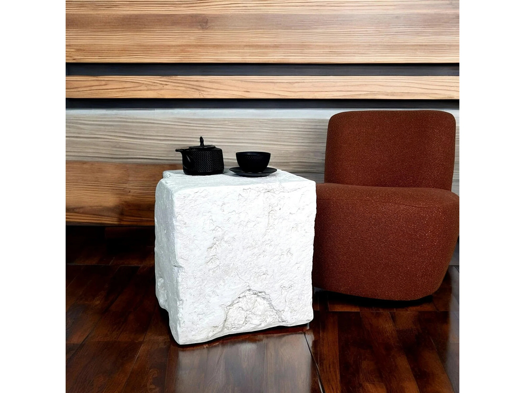 Bout de canapé design en céramique blanche marbrée OTTAWA