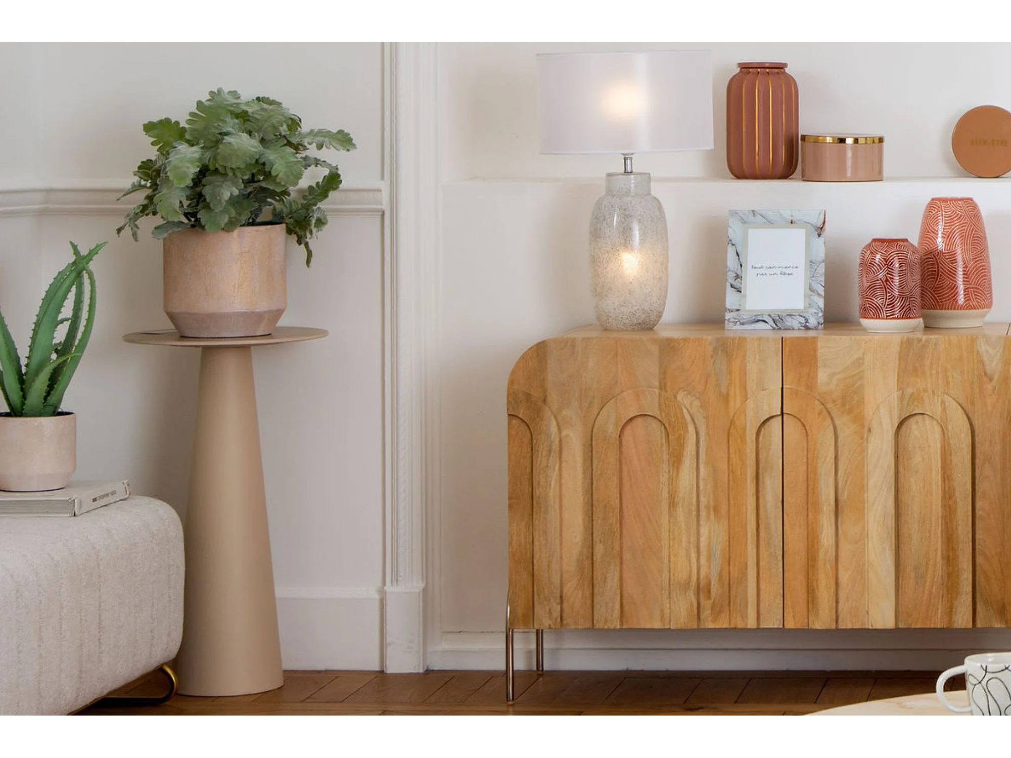 Sellette ronde en céramique et pied central beige D40 - CAMILLE