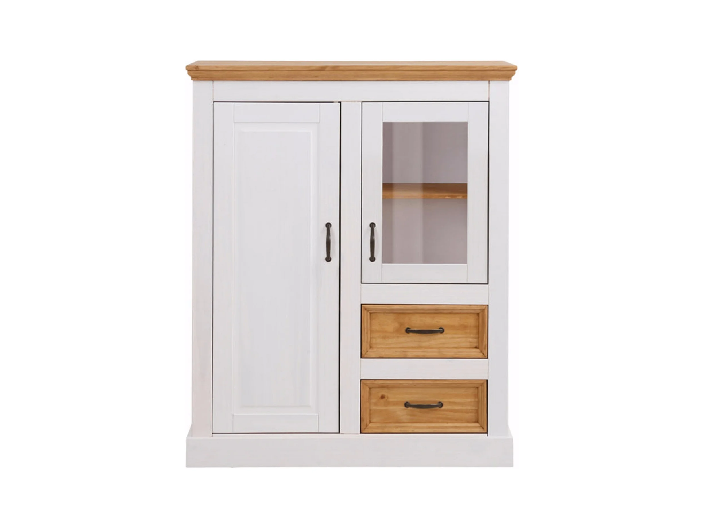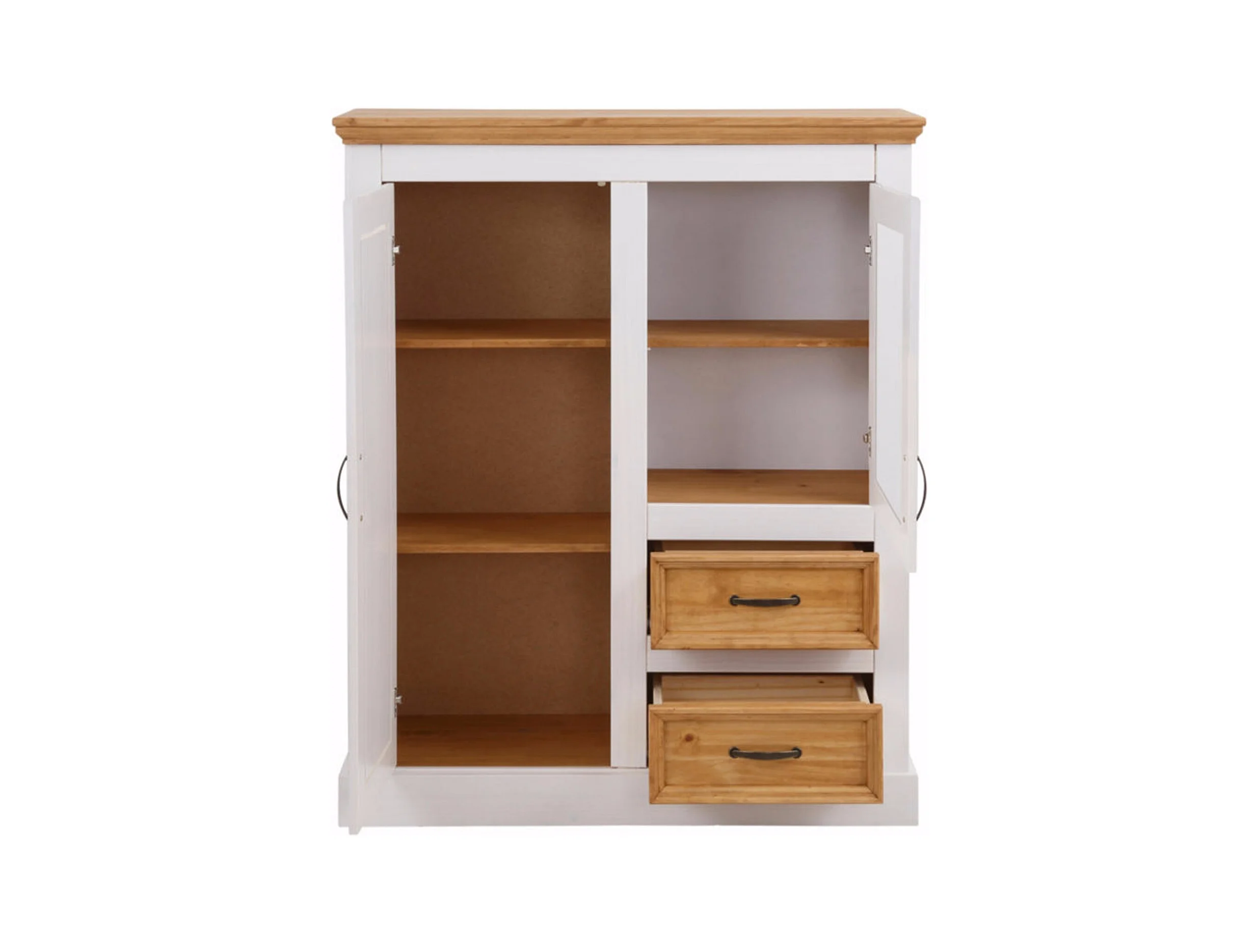 Selma|Buffet avec 2 portes 2 tiroirs en pin teinté blanc