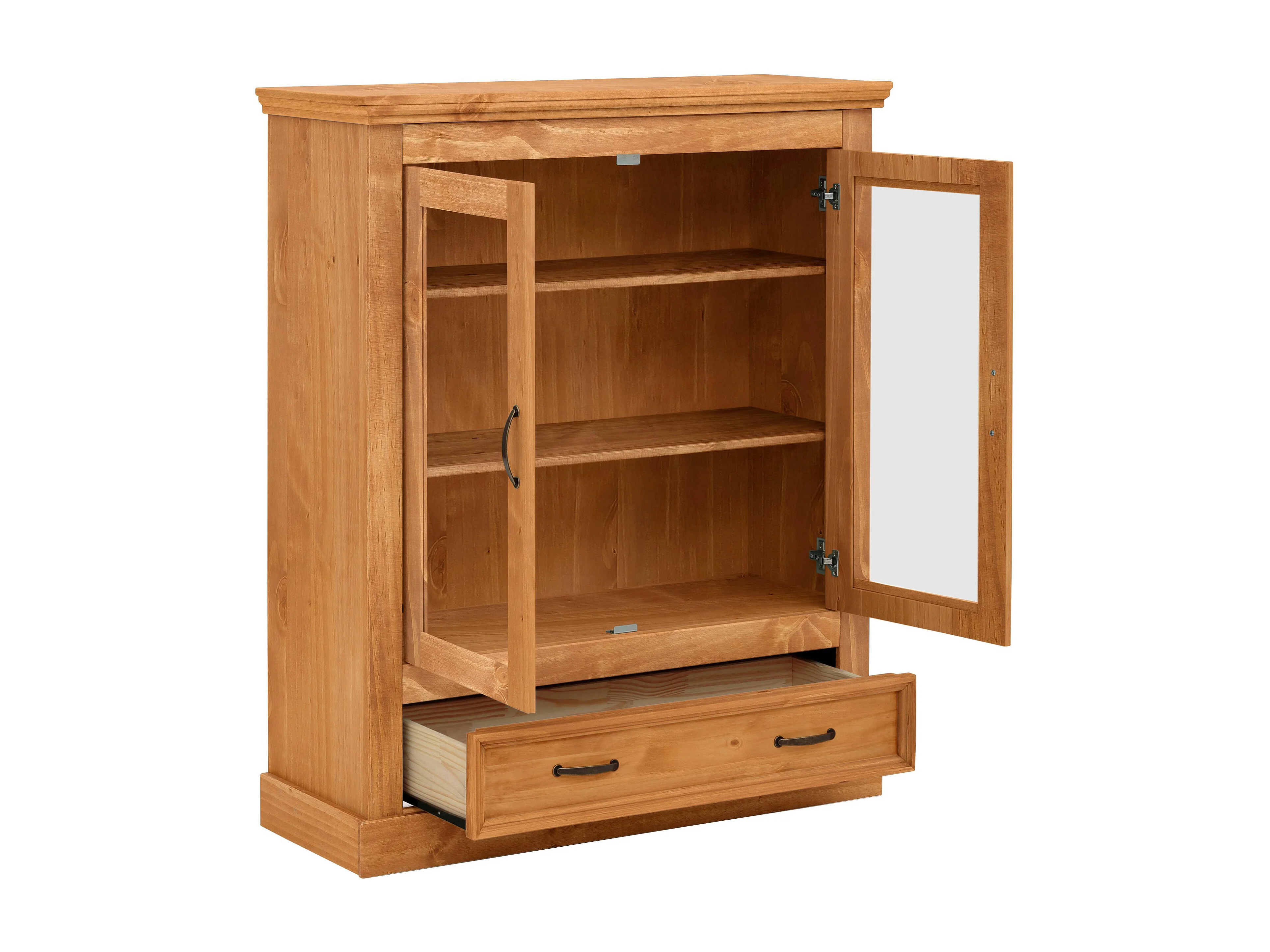 Selma|Vitrine avec 2 portes et 1 tiroir en pin