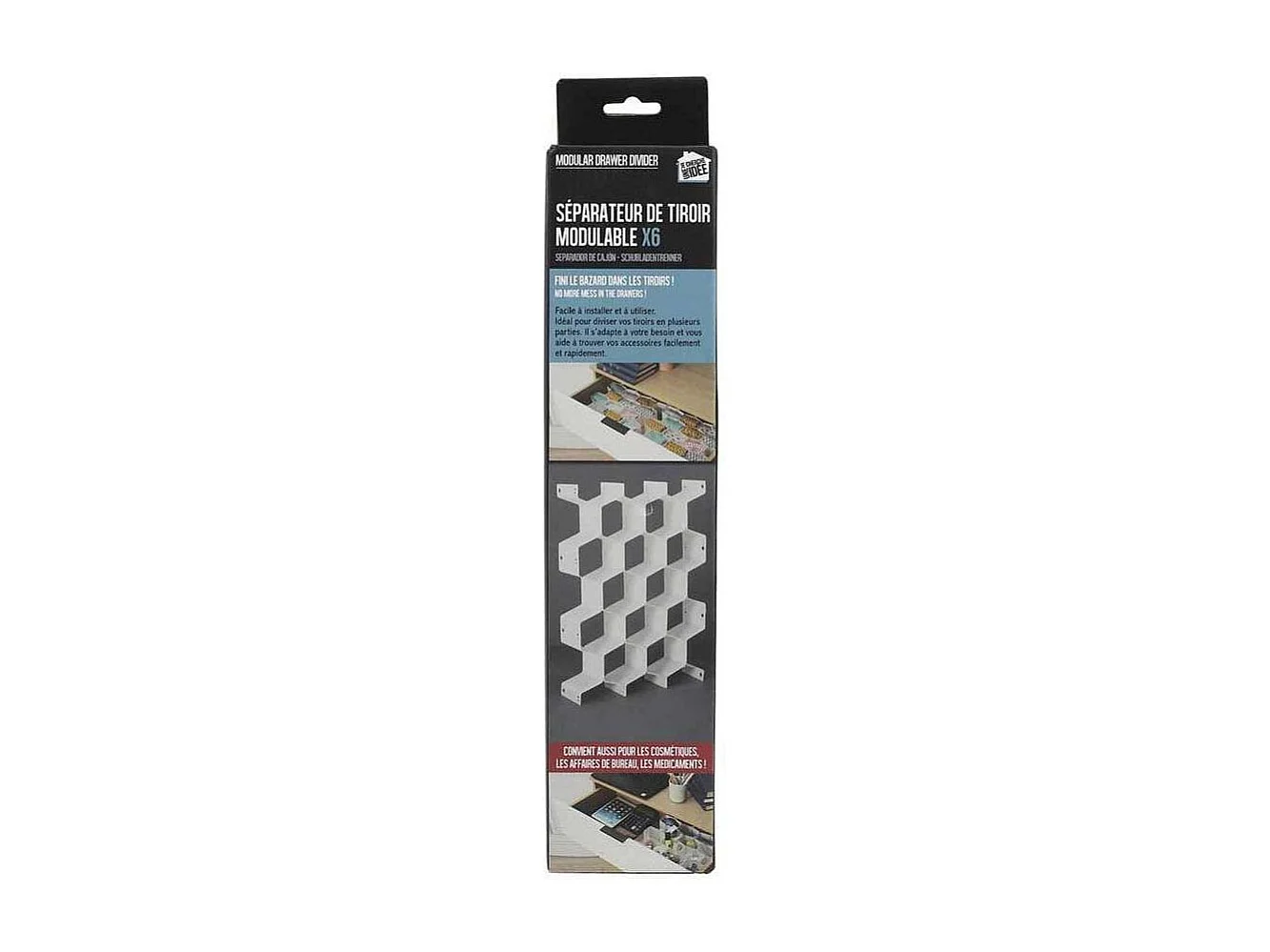 Lot de 6 Séparateurs de Tiroir "Modulable" 36cm Blanc