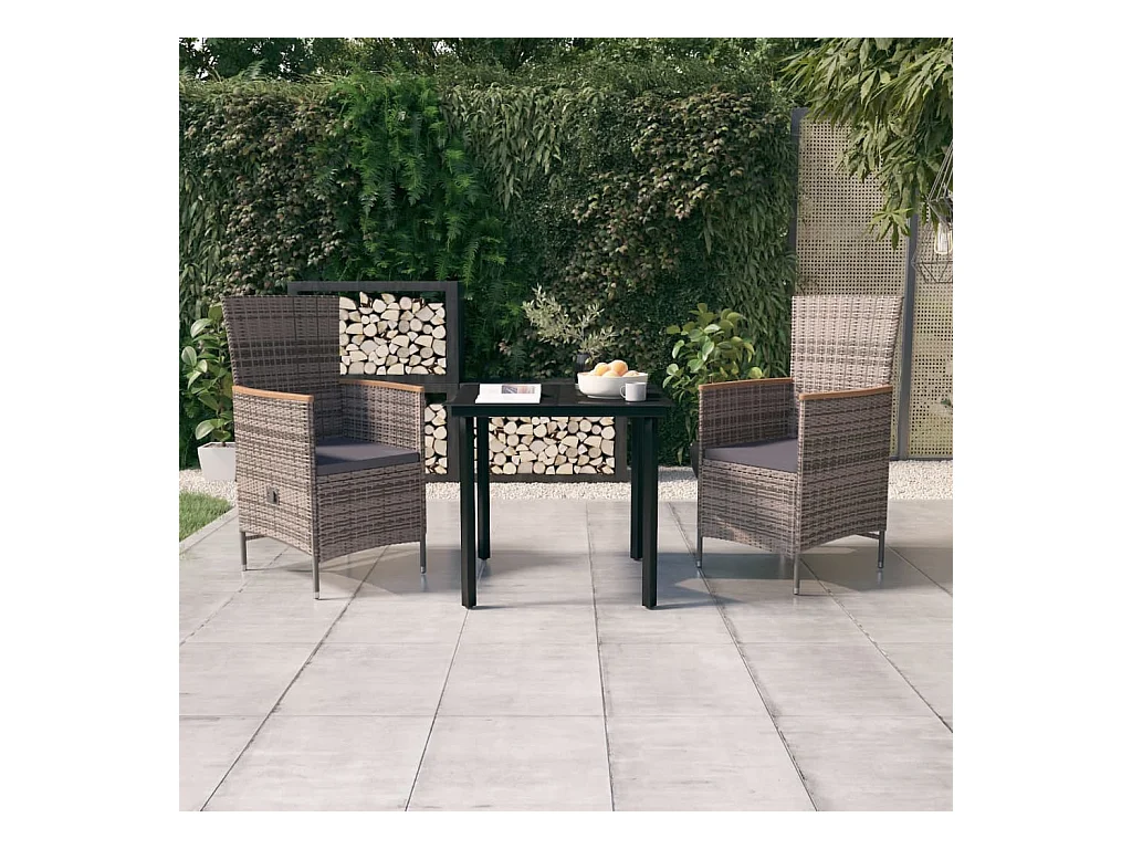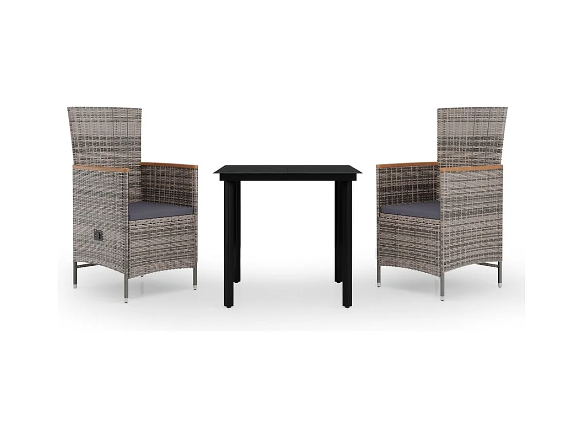 Serafino Ensemble à manger de jardin avec coussins 3 pcs Gris