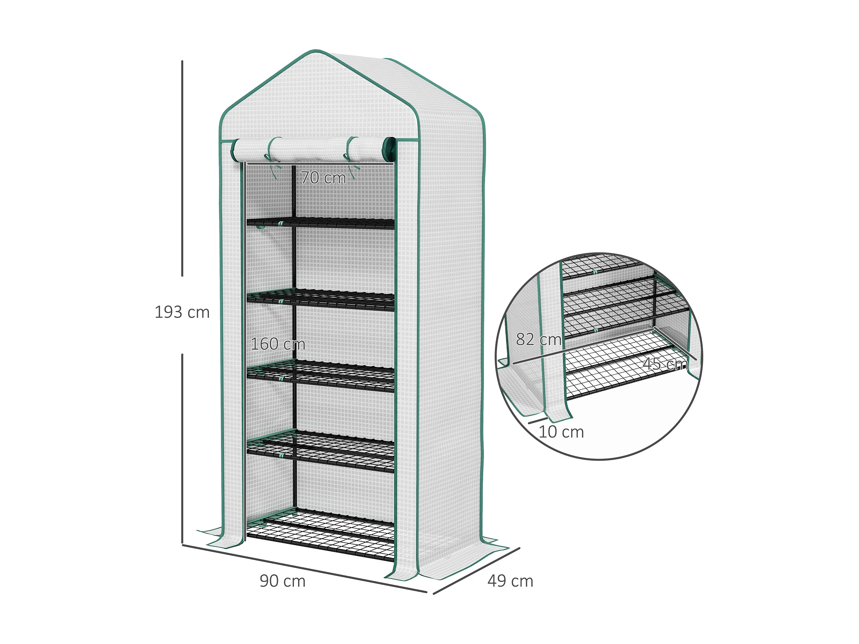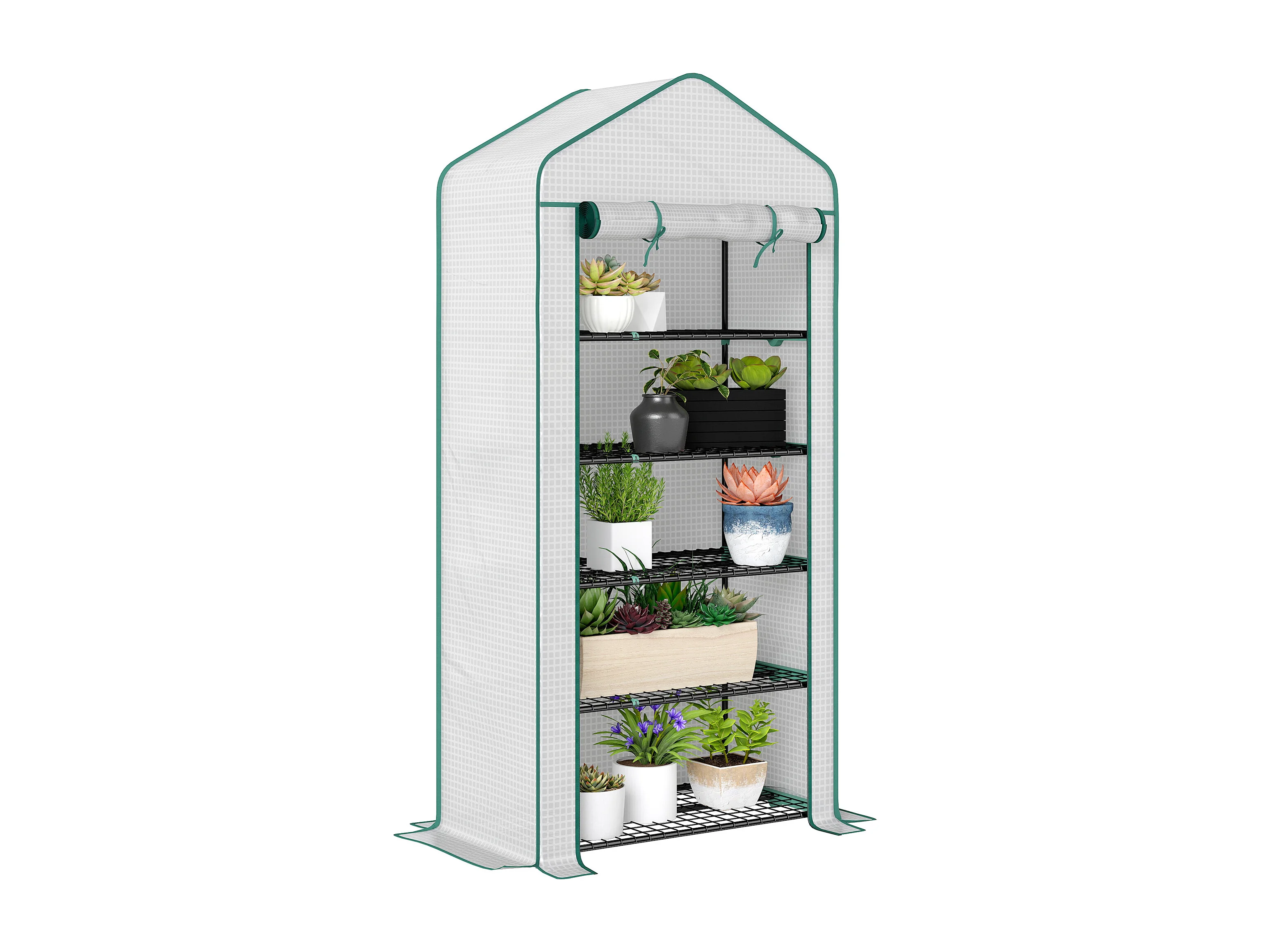 Serre de jardin balcon 5 niveaux porte acier PE blanc