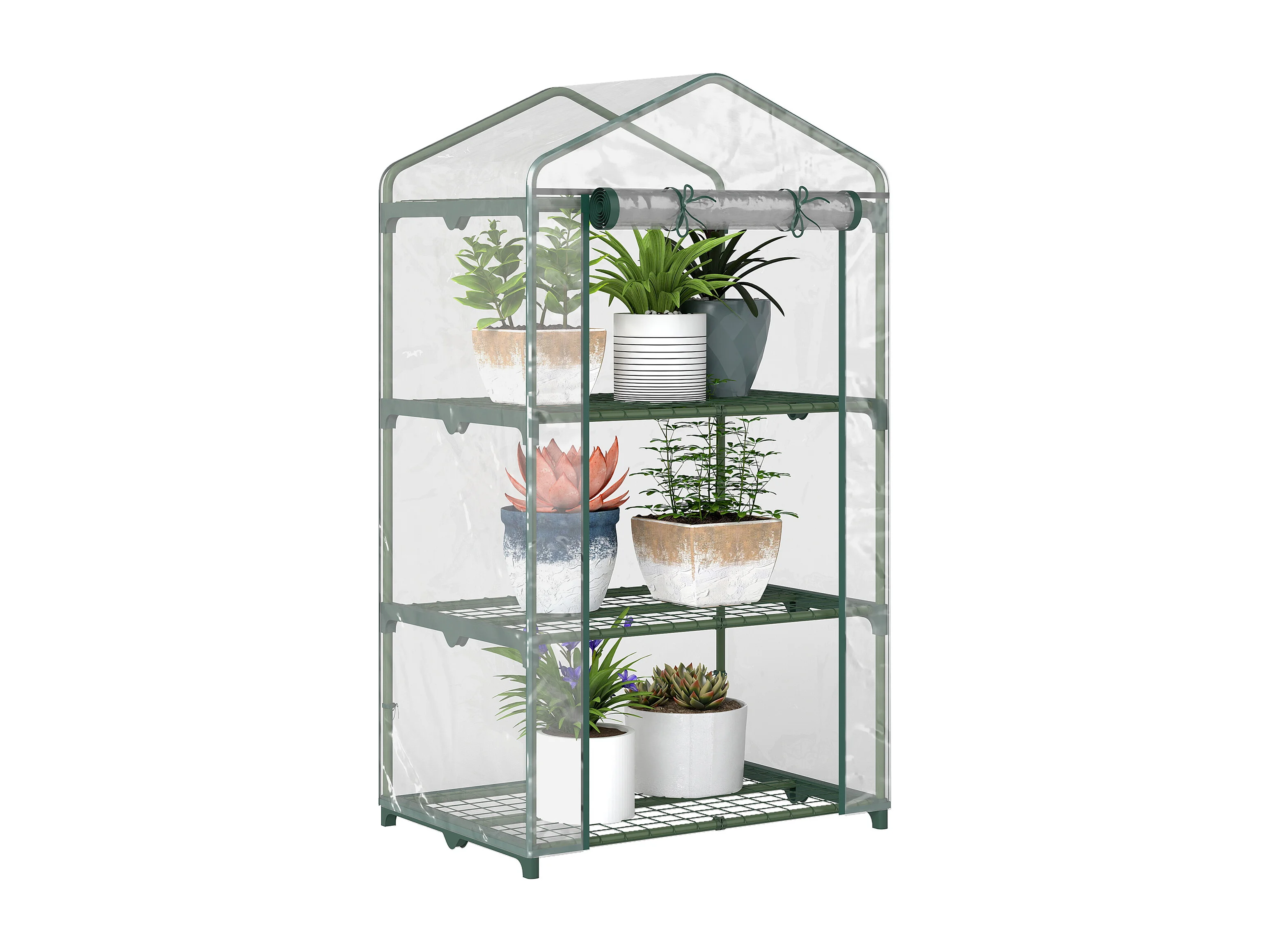 Serre de jardin balcon étagère serre 3 niveaux dim. 69L x 49l x 125H cm métal thermolaqué vert PVC haute densité transparent
