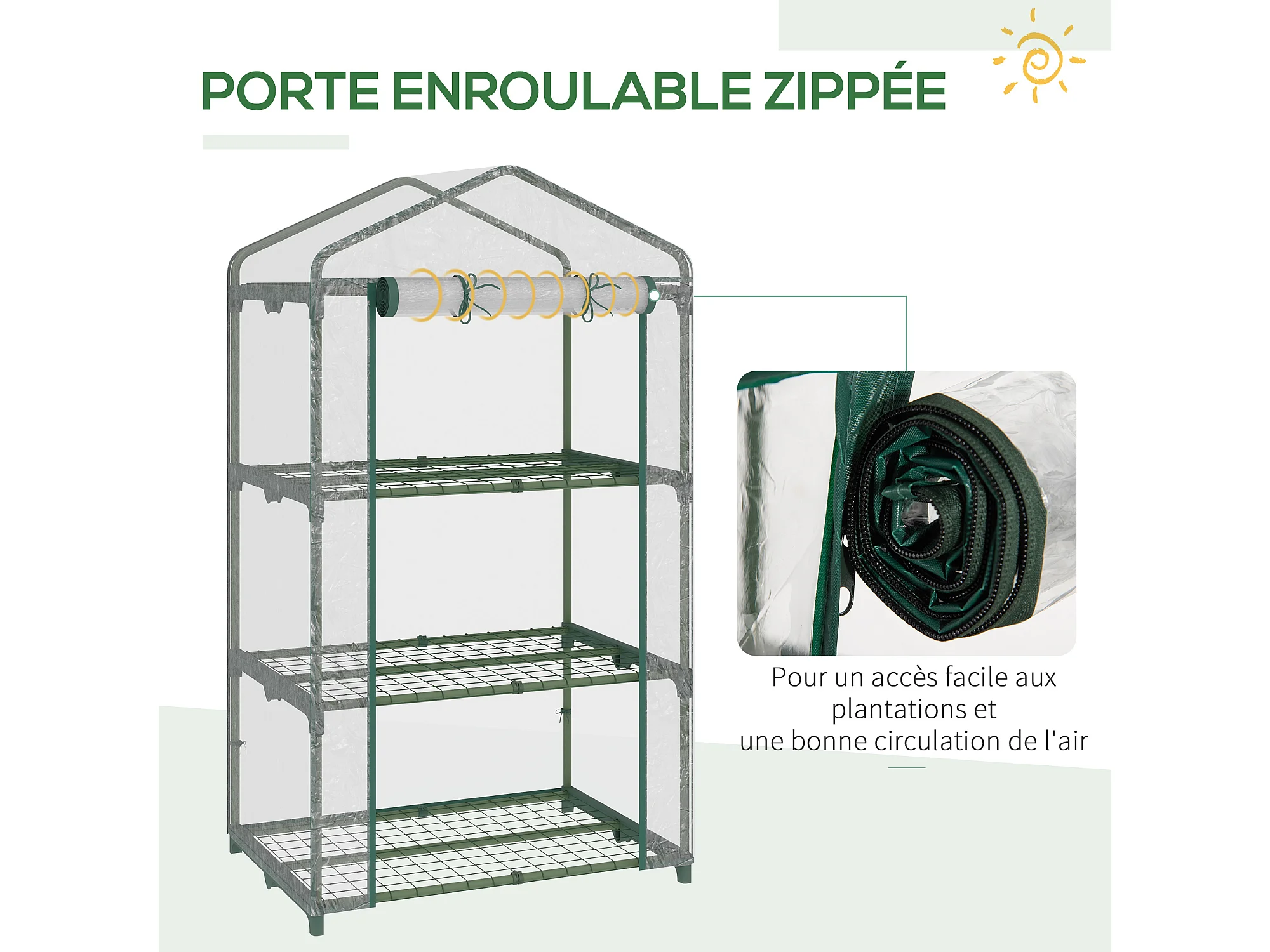 Serre de jardin balcon 3 niveaux métal thermolaqué vert PE transparent