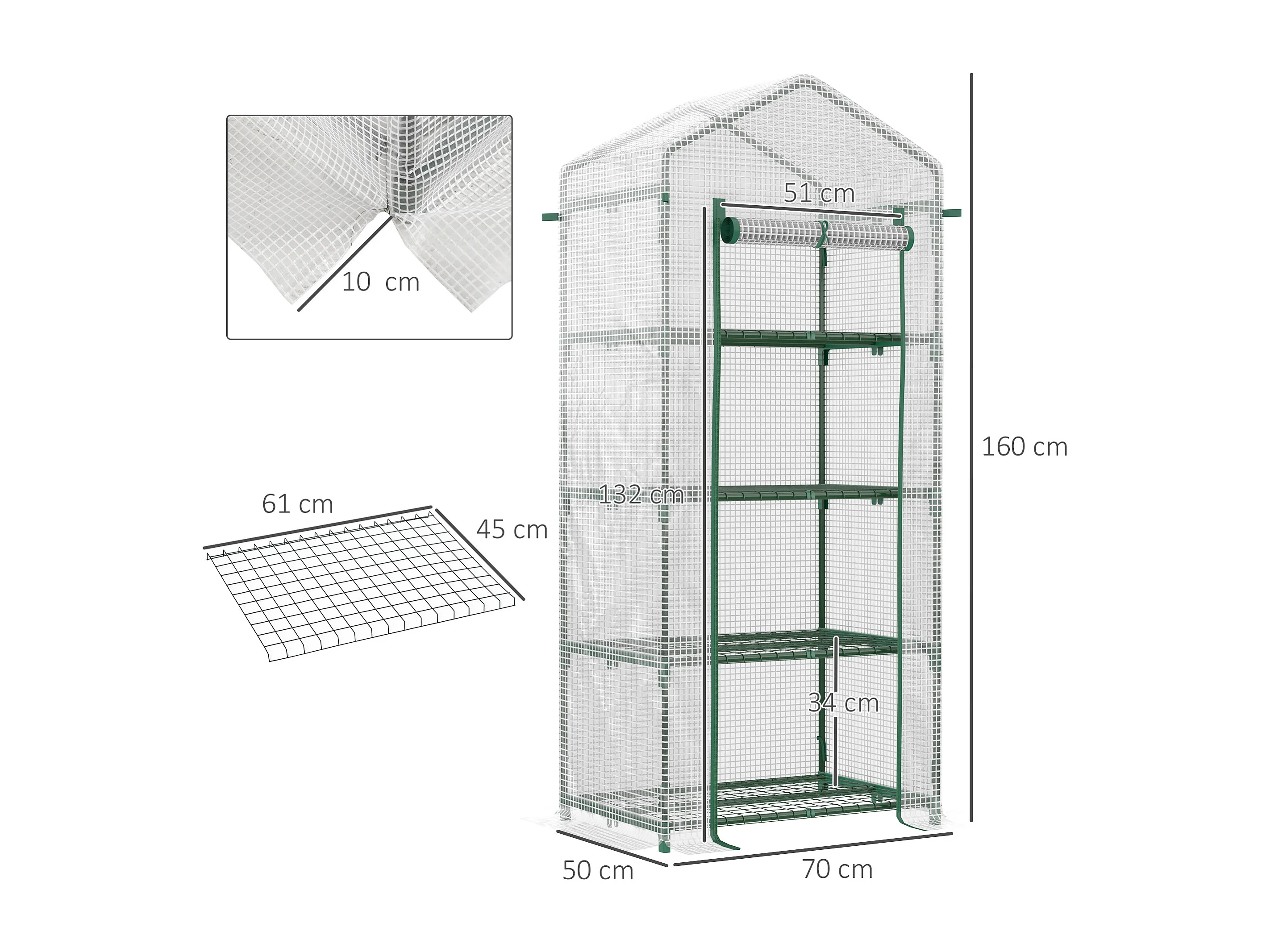 Serre de jardin balcon étagère serre 4 niveaux 0,7L x 0,5l x 1,6H m acier époxy bâche amovible PVC haute densité transparente