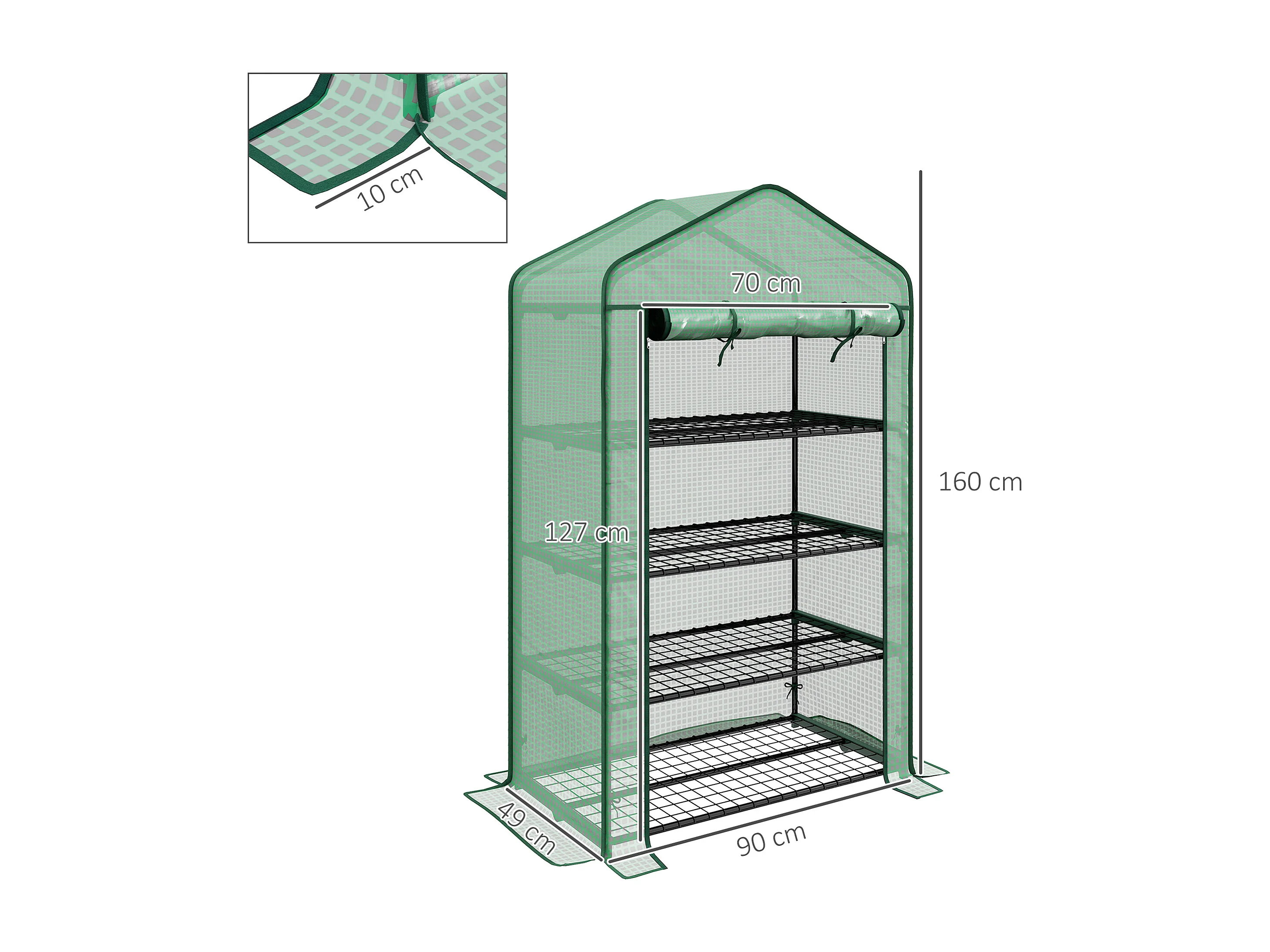 Serre de jardin balcon étagère serre 4 niveaux 0,7L x 0,5l x 1,6H m acier galvanisé bâche amovible PE haute densité vert