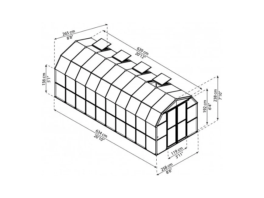 Serre de jardin jardinage polycarbonate 250 x 185 x 195 cm 1608007