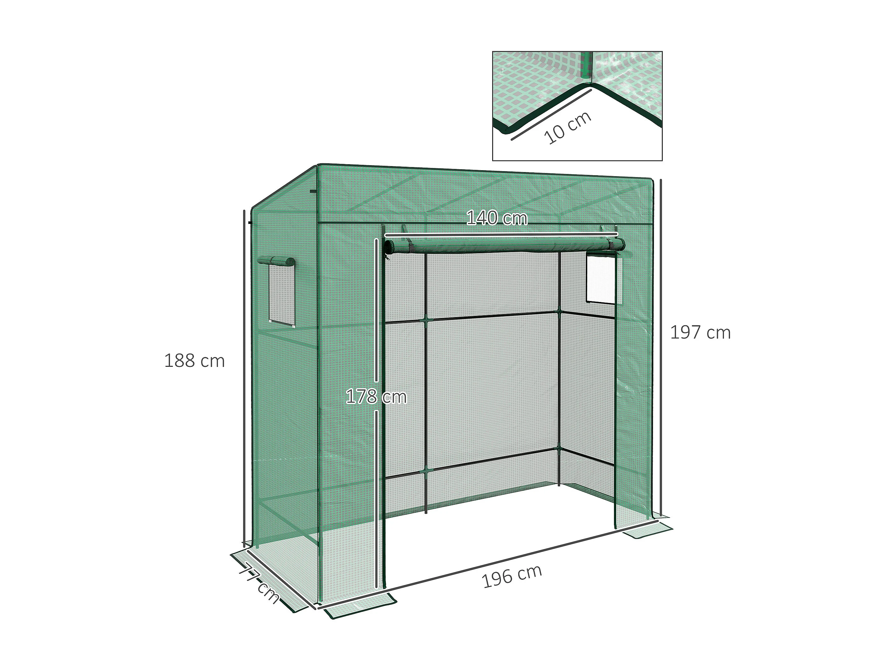 Serre de jardin 6 tablettes dim. 1,4L x 0,73l x 1,9H m porte déroulante fenêtres acier PE haute densité vert