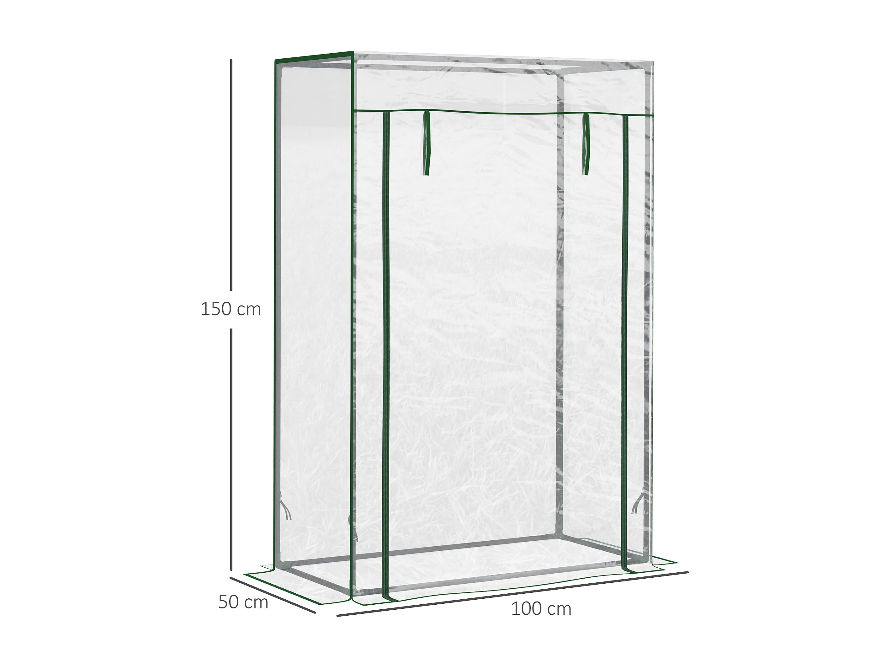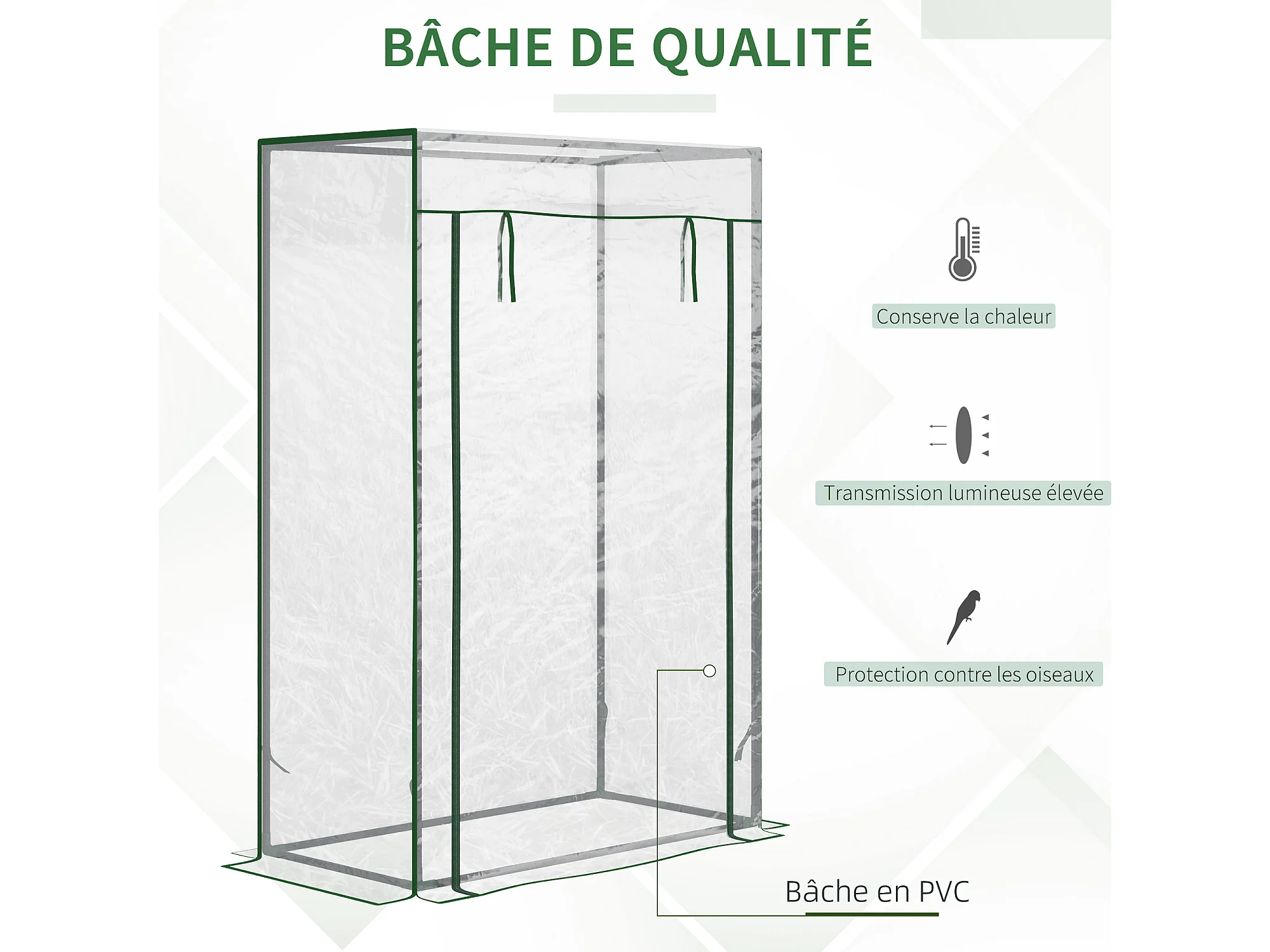 Serre de Jardin serre à tomates 1L x 0,5l x 1,5H m porte zippée déroulante acier thermolaqué PVC haute densité 140 g/m² anti-UV