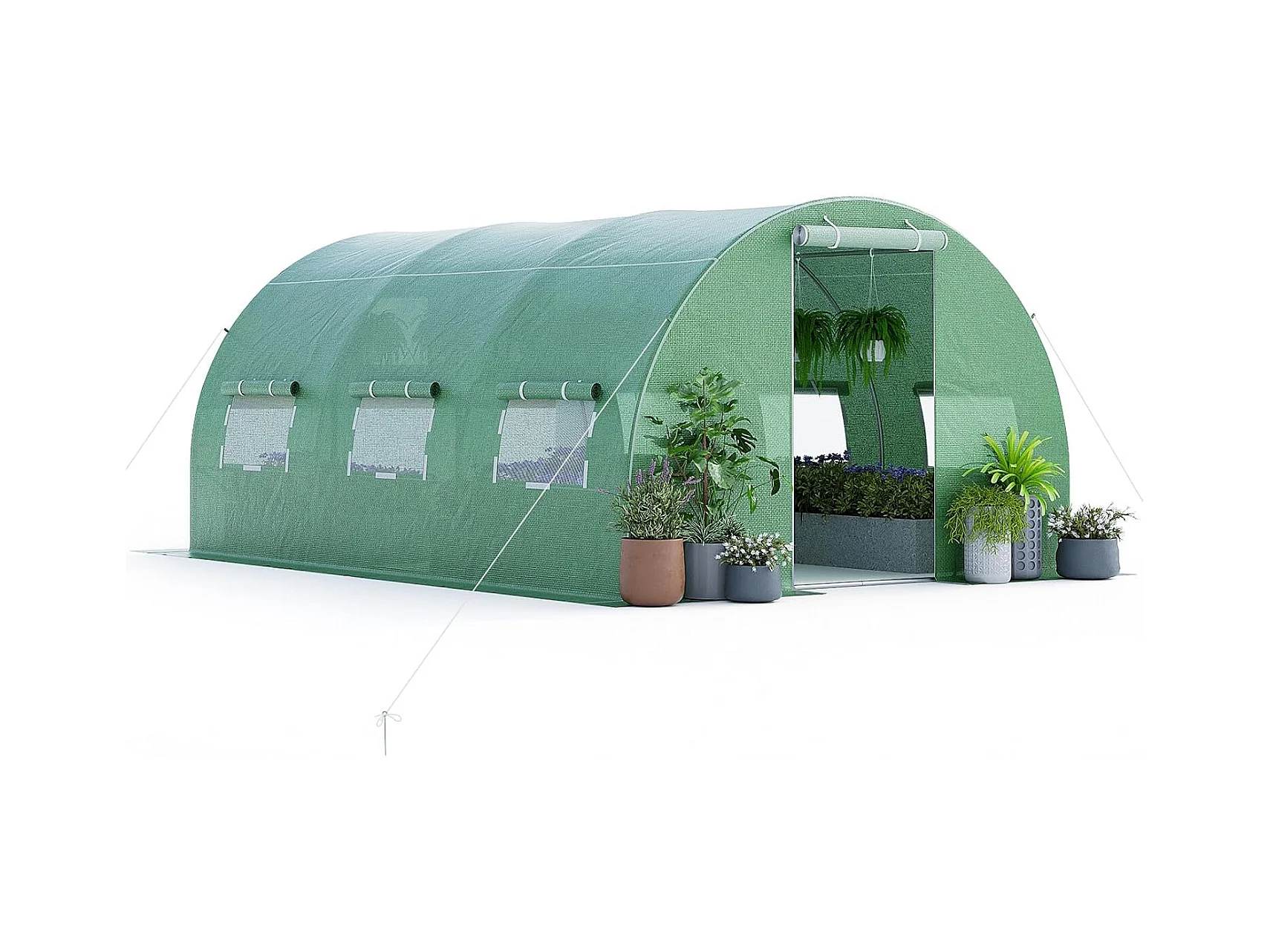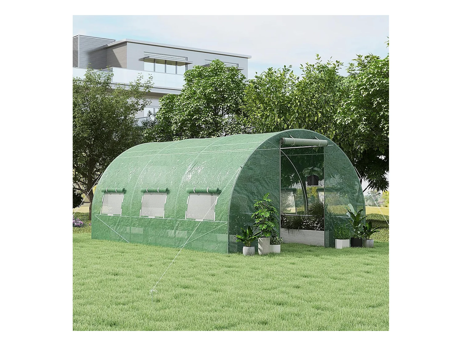 Serre tunnel 24m² dim. 8L x 3l x 2H m - 16 fenêtres, porte zippée - acier galvanisé PE haute densité vert