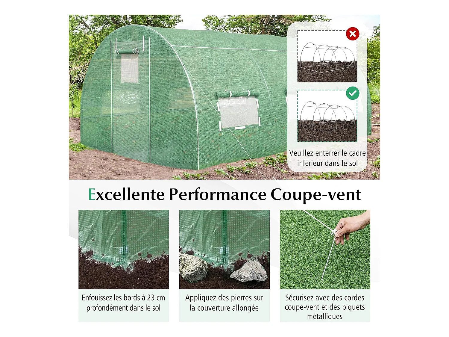 Serre en plastique tunnel en acier fondation grillagée toile PE 170g/m133
