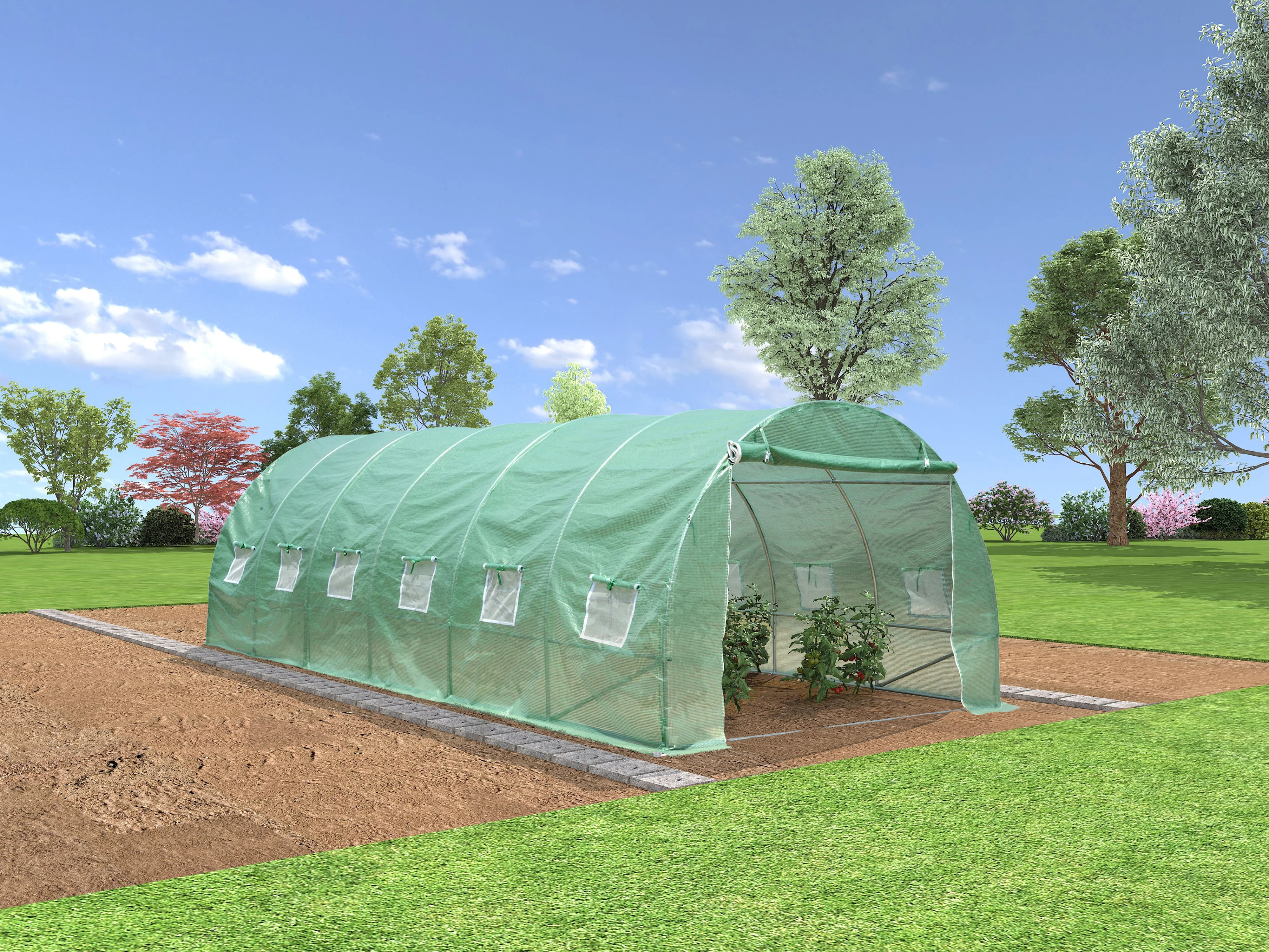 Serre tunnel avec structure en acier 24 m² - L300 x l800 x H200 cm - Vert - IPOMEA